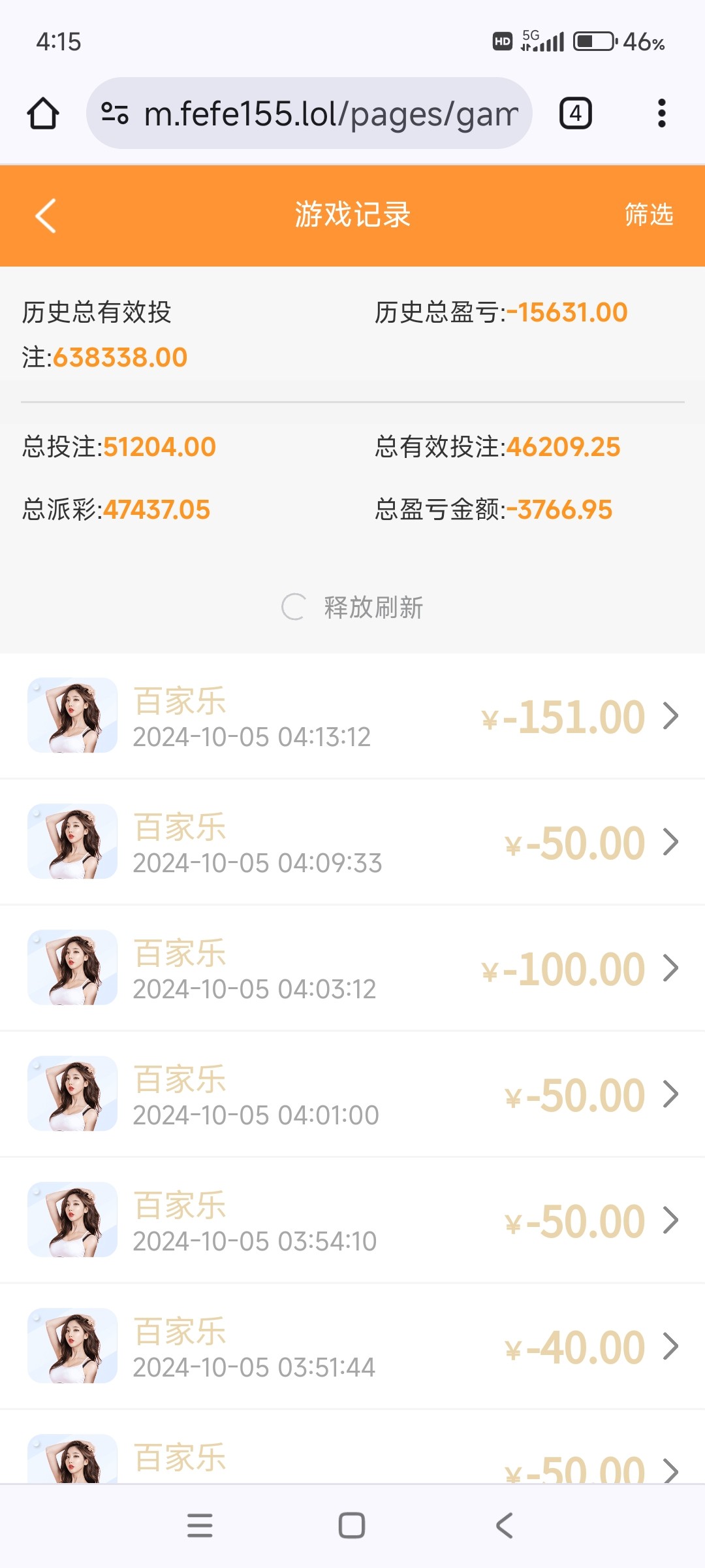 a288133 这哥们估计赢了不少,1.5万打六十万流水不可能吧。