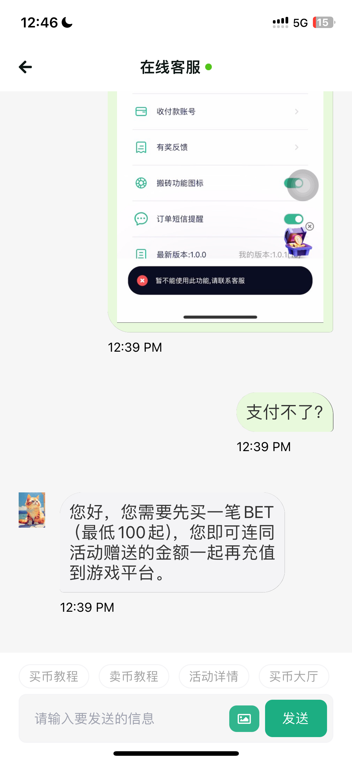 为什么我不能充值 显示要买币