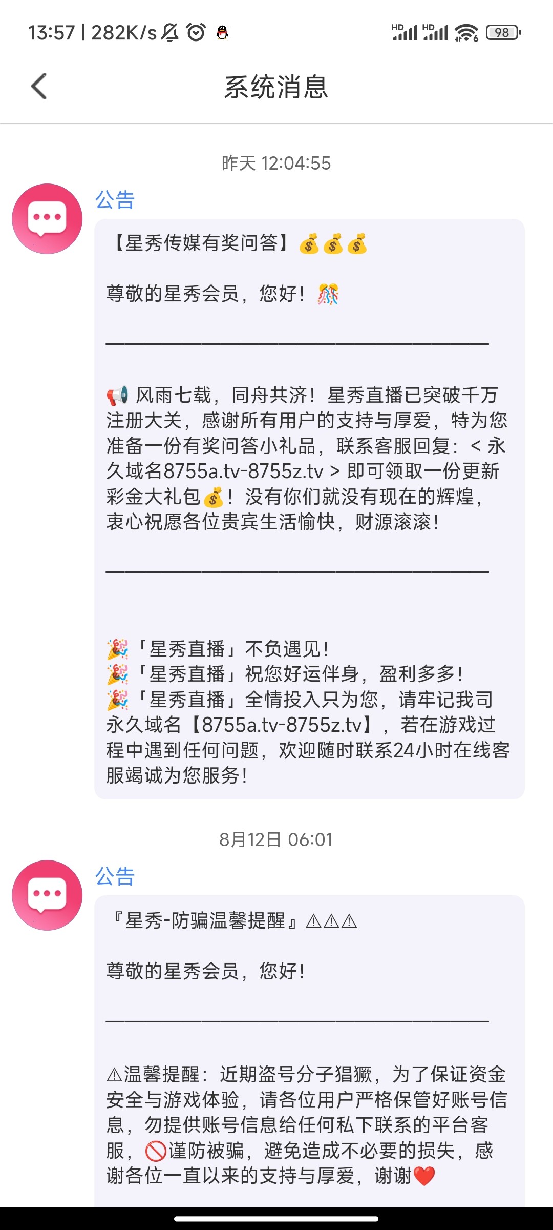 星秀直播域名更新彩
