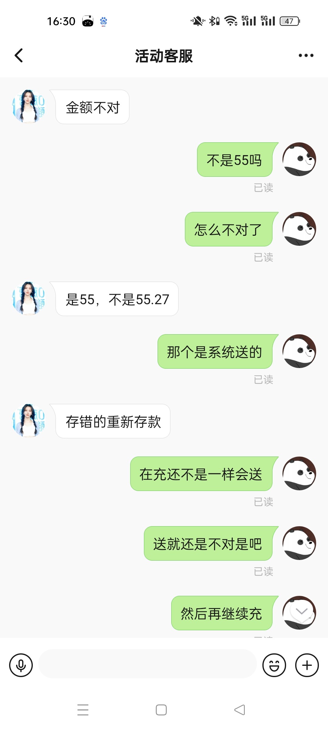 充55送了2毛钱 就找借口说金额不对叫重新充值 这个傻狗到处骗人的