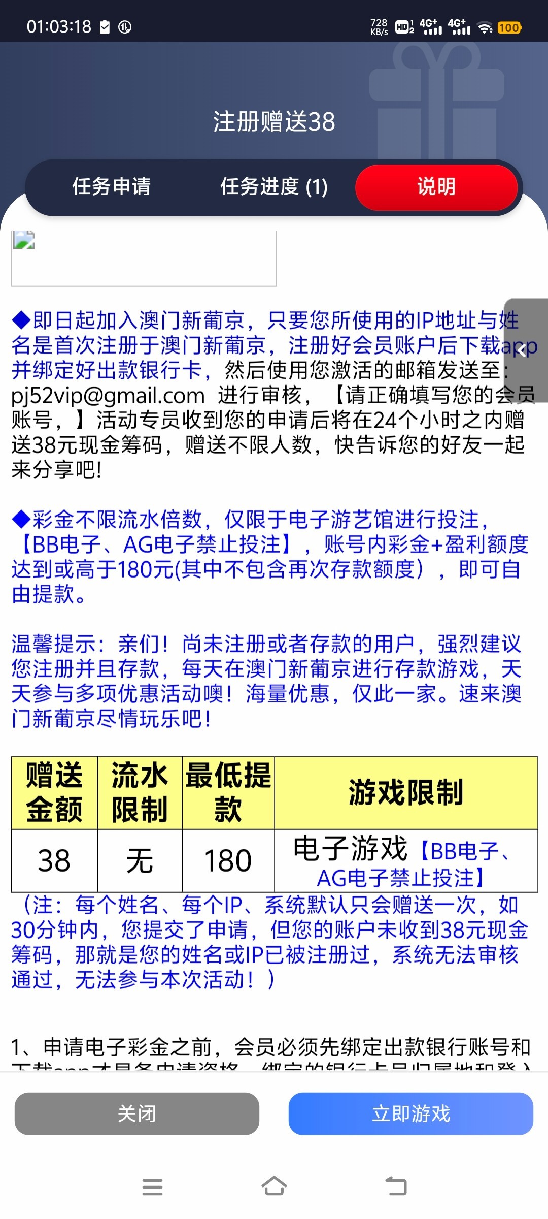 注册绑定邮箱和银行卡,发邮件备注自己的账号,彩金只能玩电子(BB,AG不能玩)无流水限制满180提,链接5678.MOM