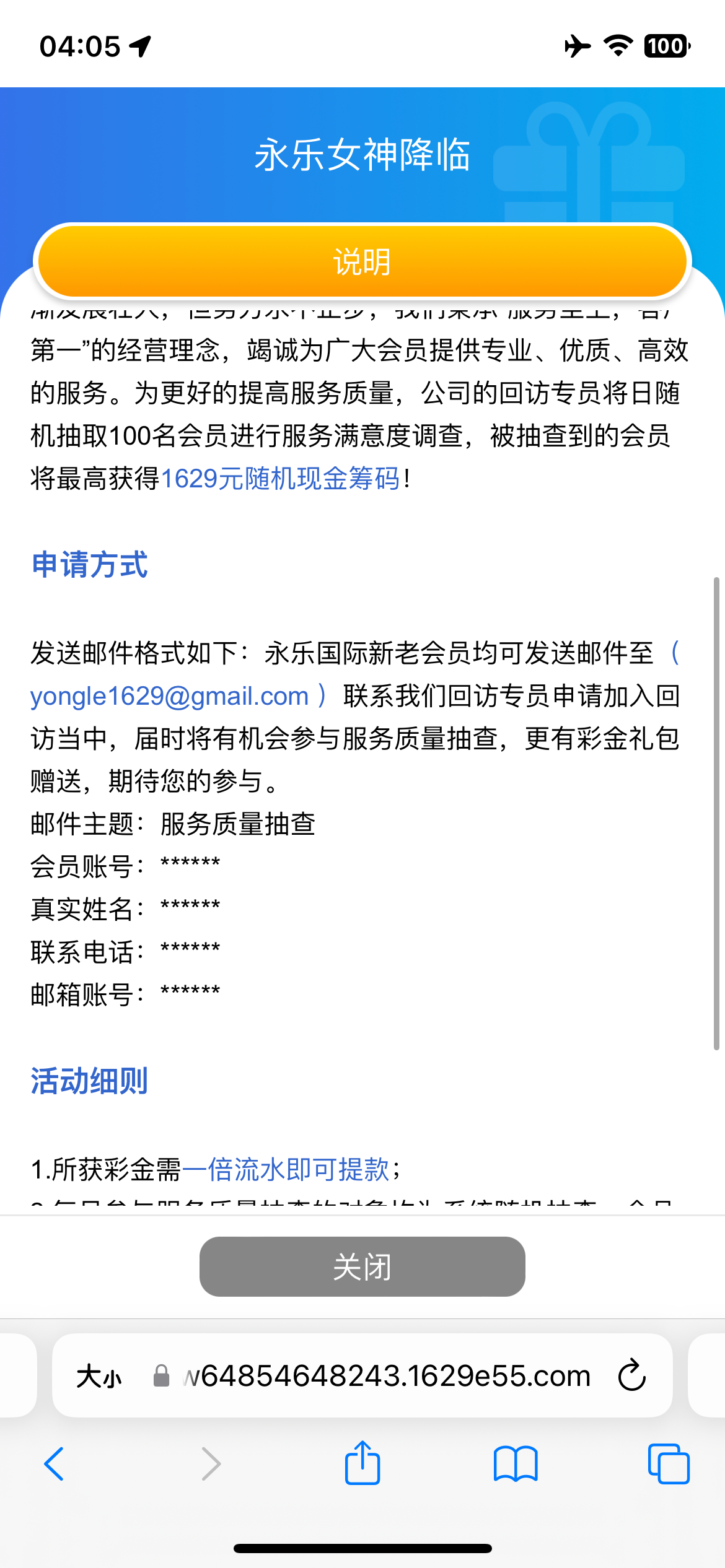 这个发邮箱就送彩金 相当于回访彩金一样 充值的才可以申请 基本每个月都能申请一次 629.com