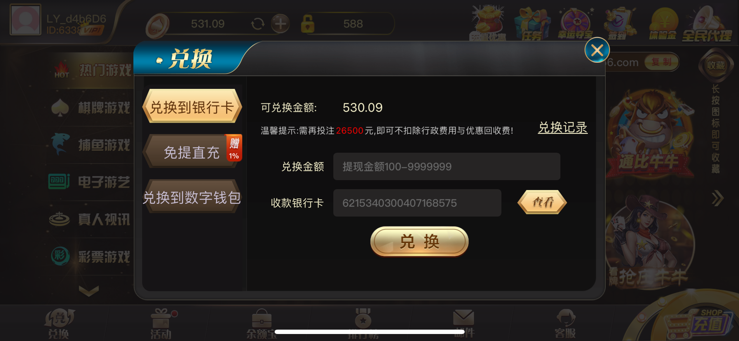 100出2k,就是打流水麻烦,后面再充就没水了