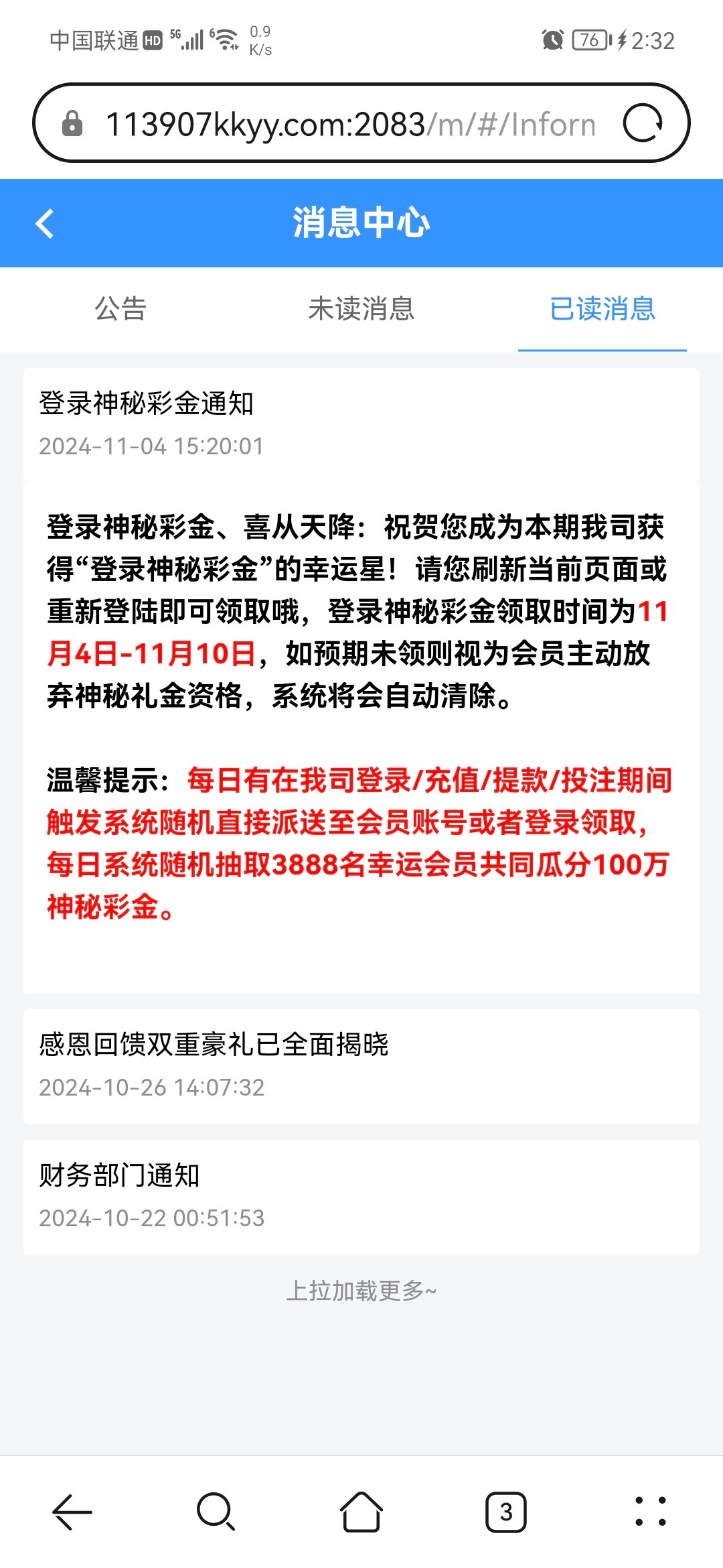 有号的赶紧上去领,03311,7455,1139,都送了,历史充值越多,彩金越多,我拿到神秘彩金的号都是差不多一个多月没充过钱了,,有的号近几天充值过反而没收到神秘登录彩金
