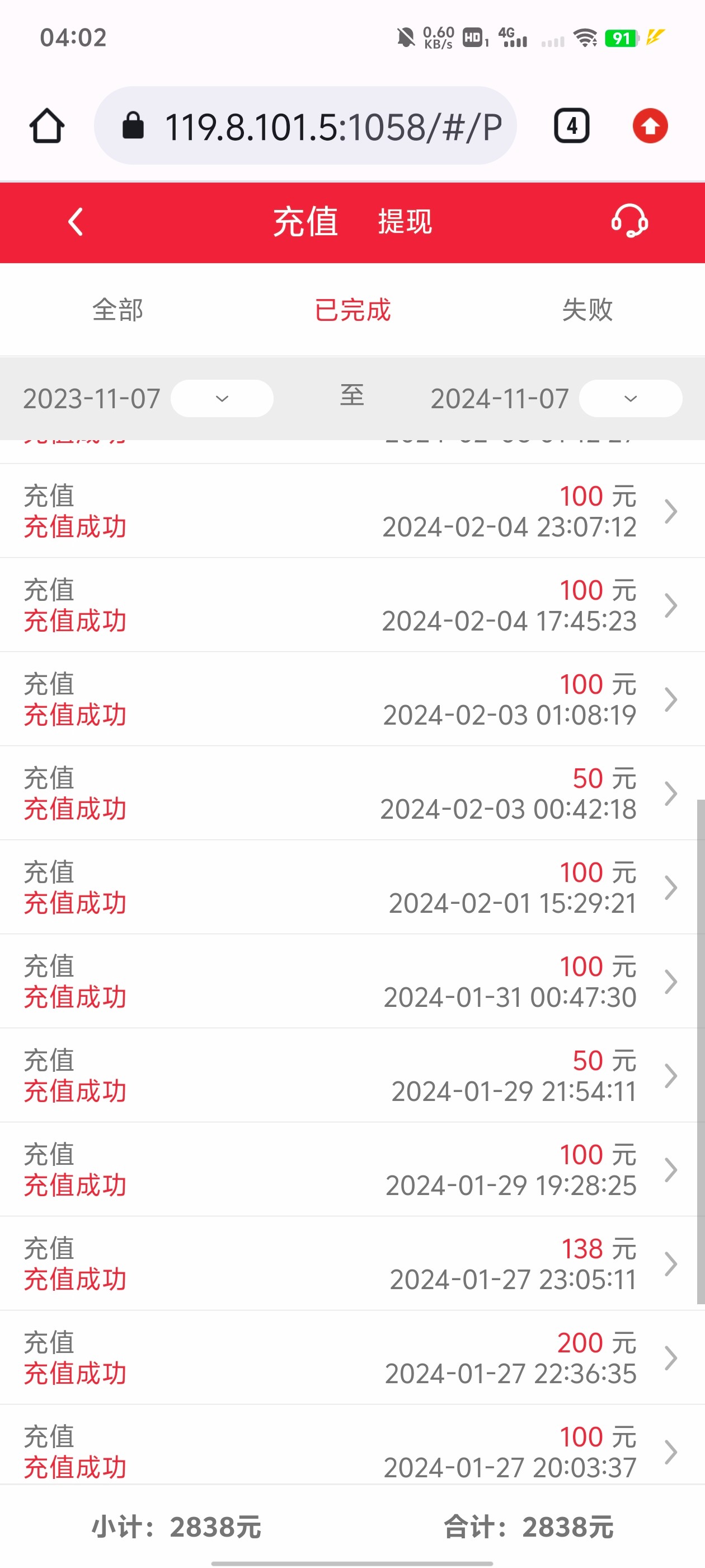 半天半天没到,充值100+18