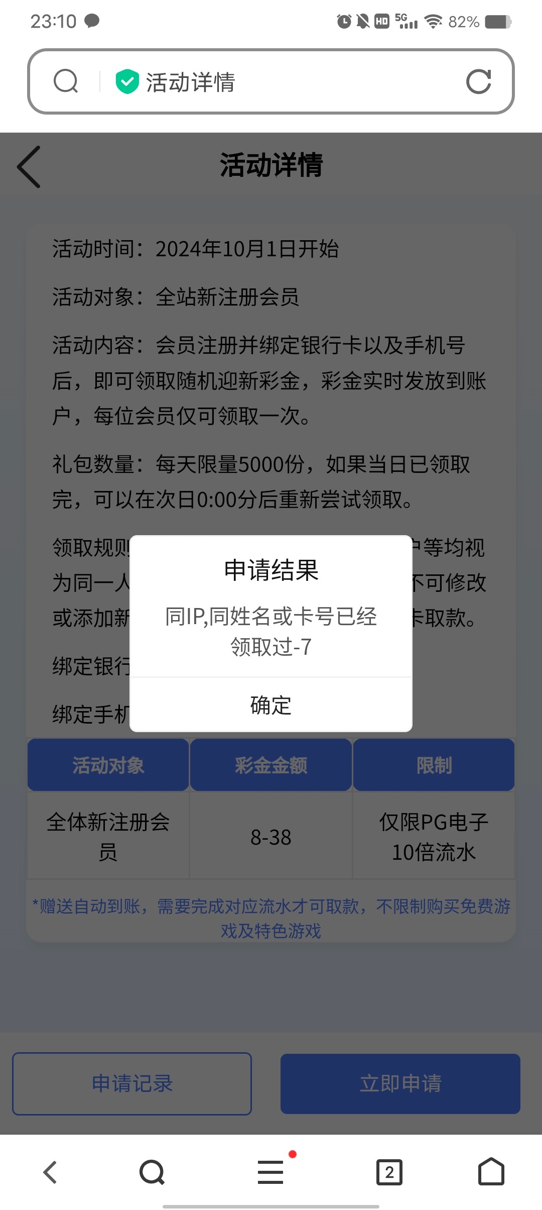 新用户注册绑卡完善信息自助领取8-20彩金,具体自测吧切记勿充值。
