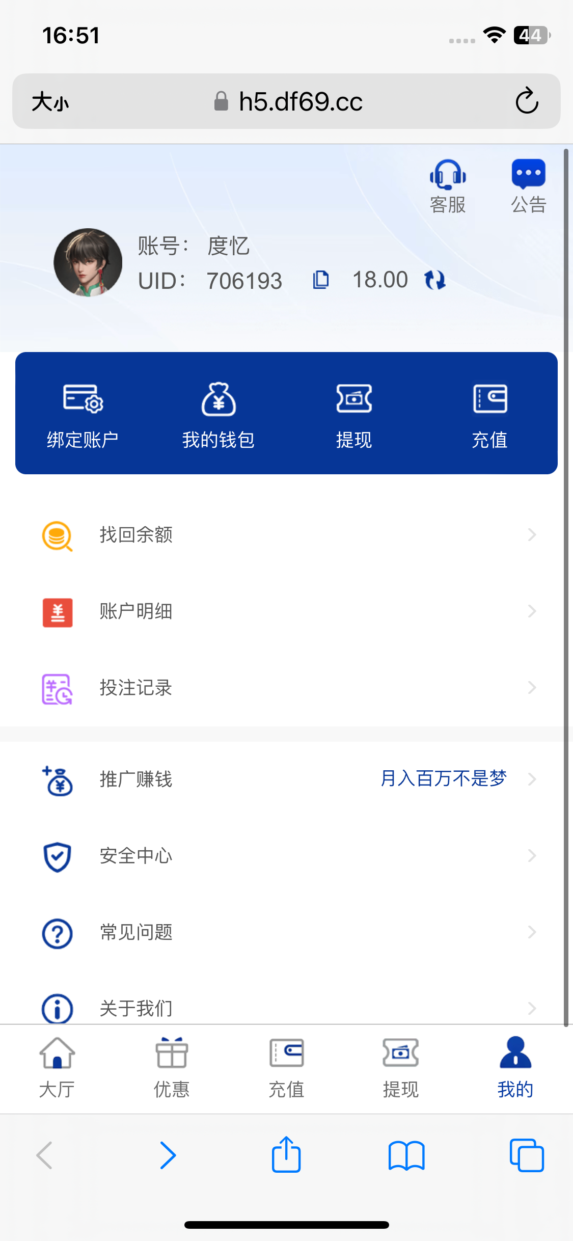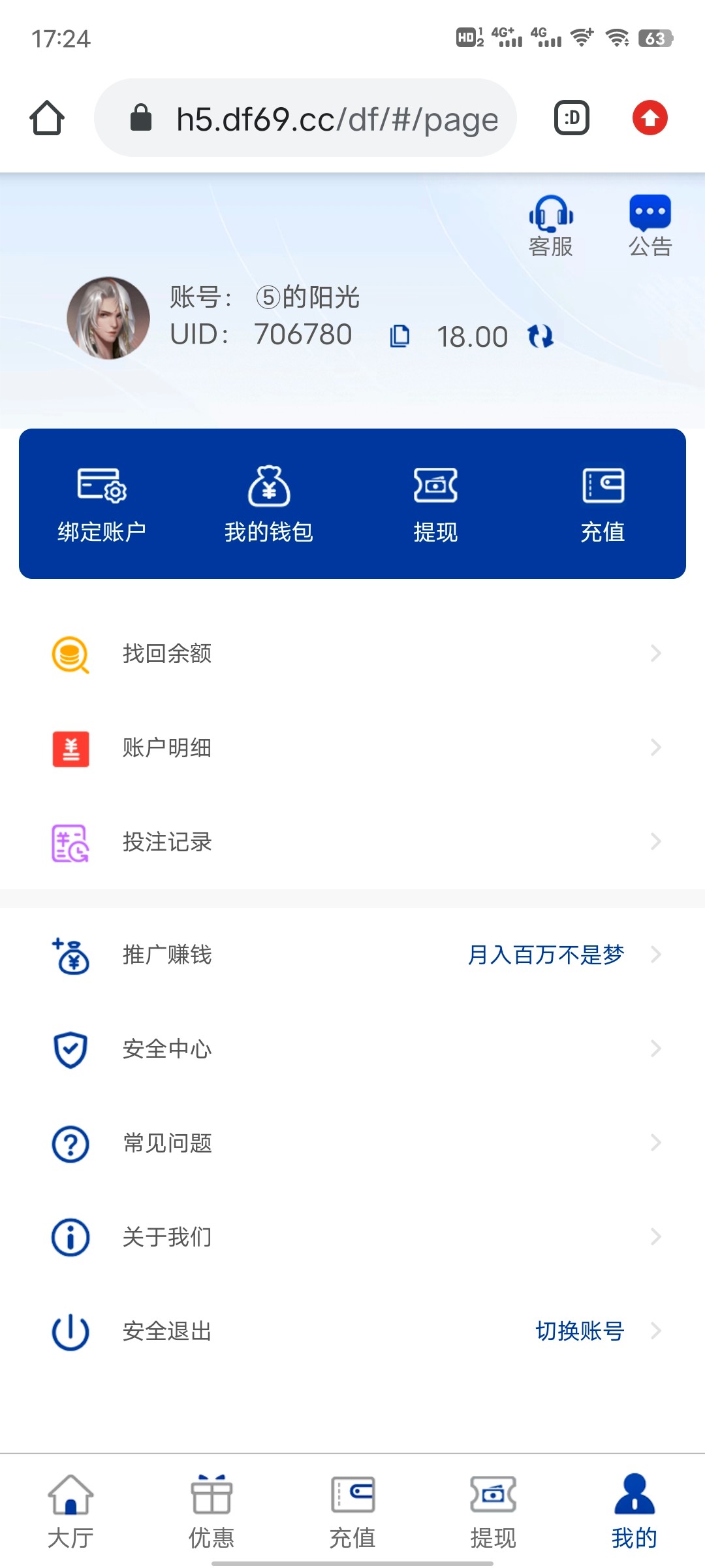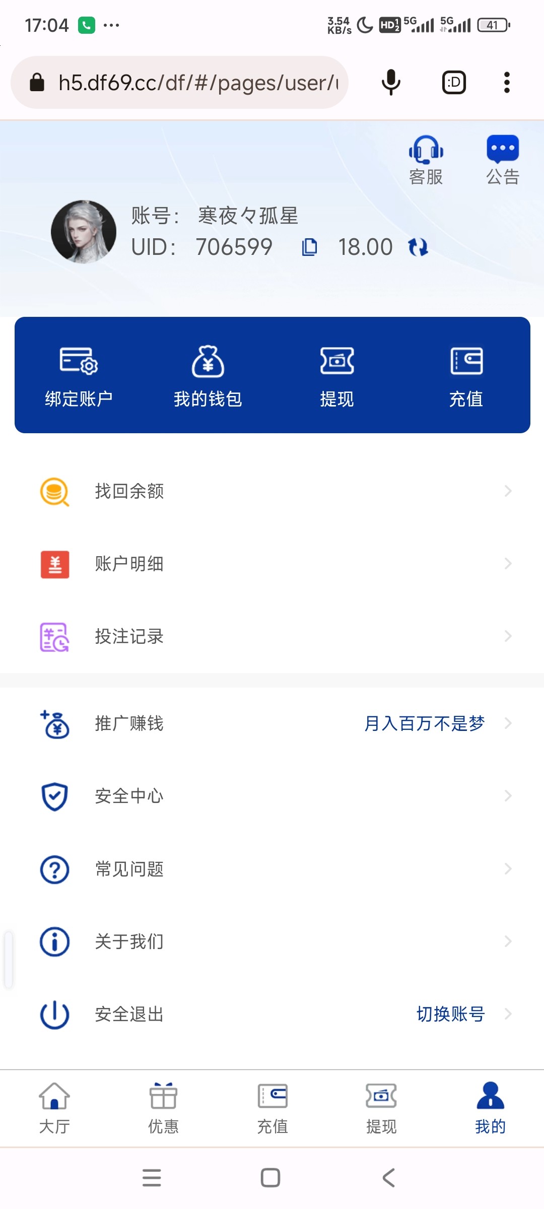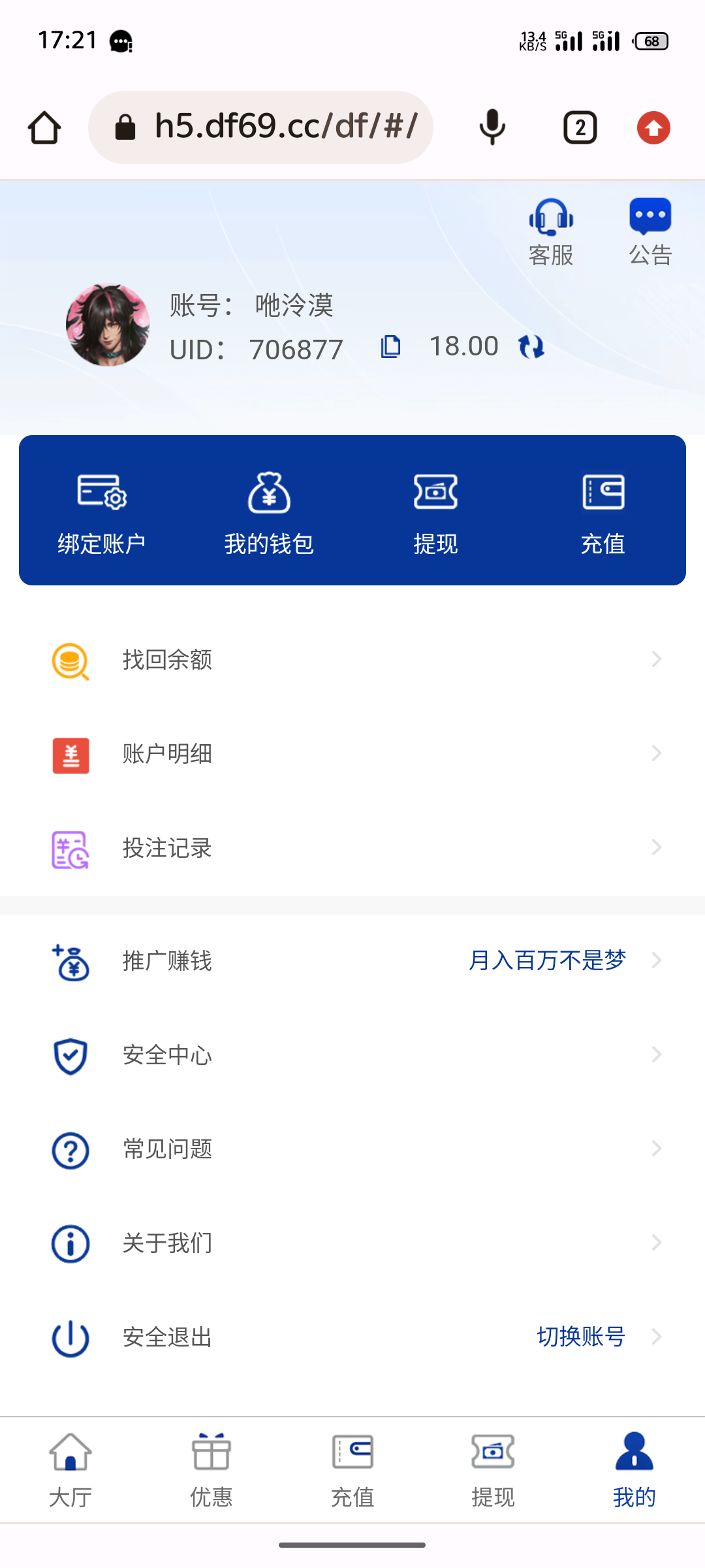 游戏限制PG,PP,FC电子禁止购买免费游戏,充值到账后,请到大厅—优惠页面对应活动(新人存送礼100%或每日存送礼50%)中点击申请按钮,申请成功后2-5分钟到邮件中领取,再到大厅—我的—我的钱包中取出。