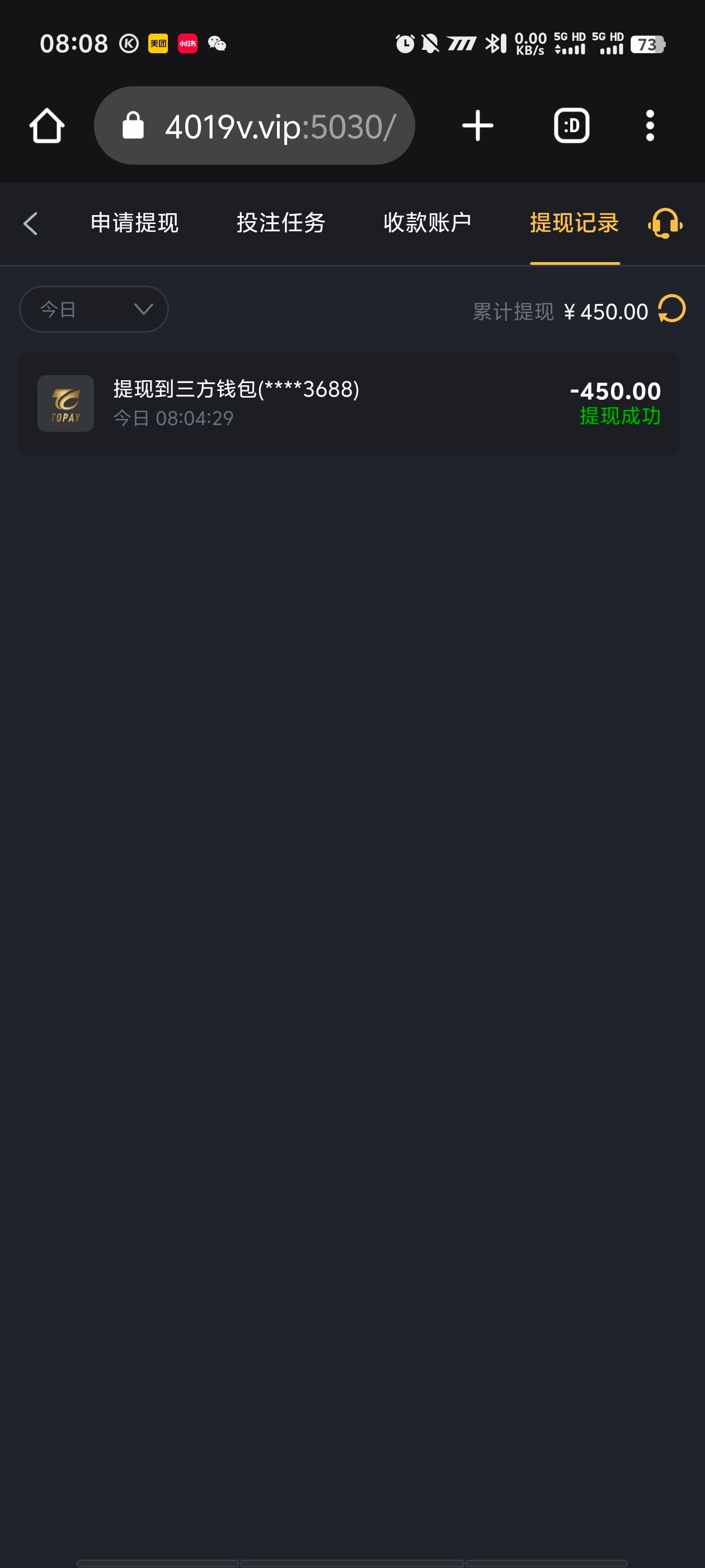白嫖450到账