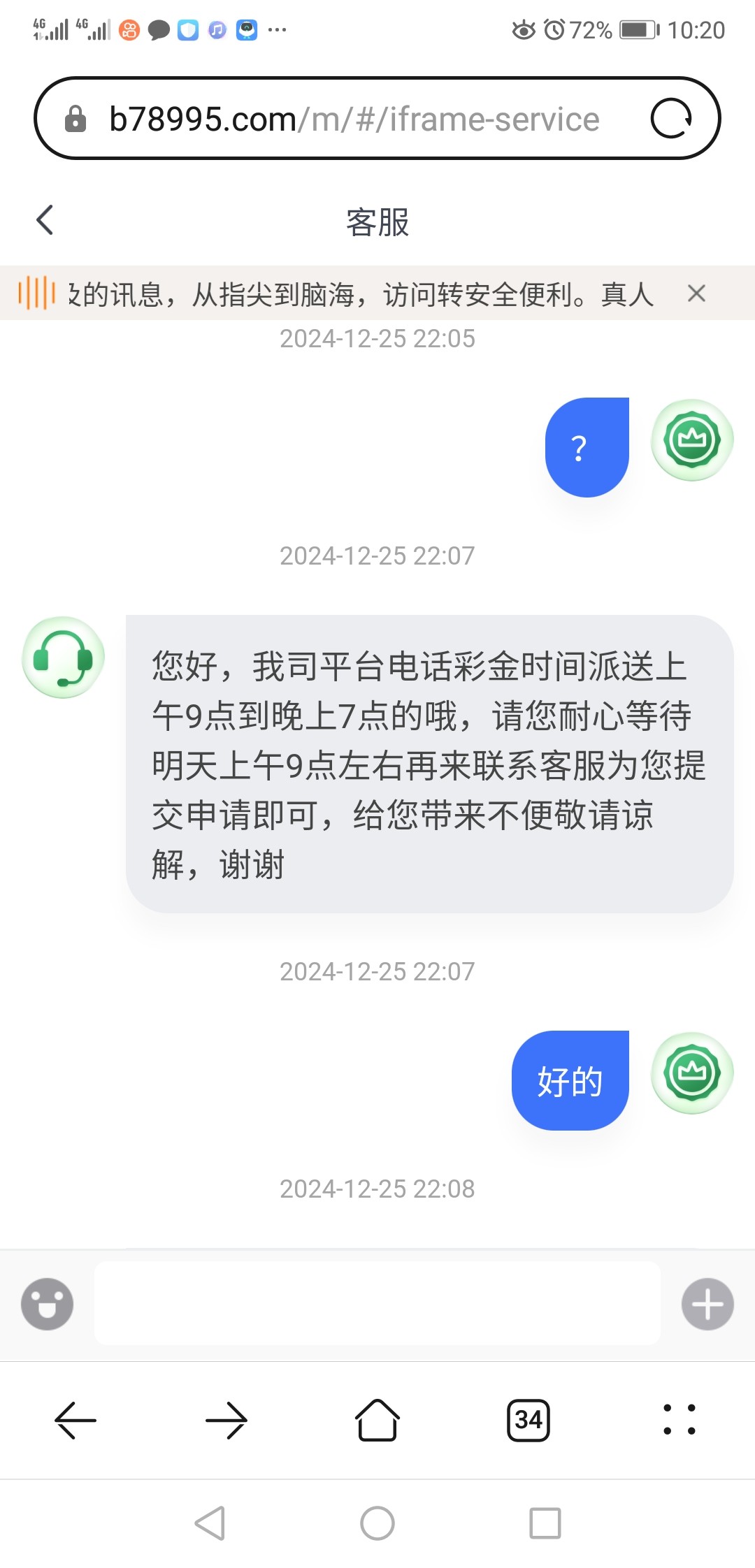 客服让你明天或者过两天去申请的。等到时候去申请就好了,基本都会送。这个模版回访彩金就是这样。我就是昨天申请,然后今天去申请给了。