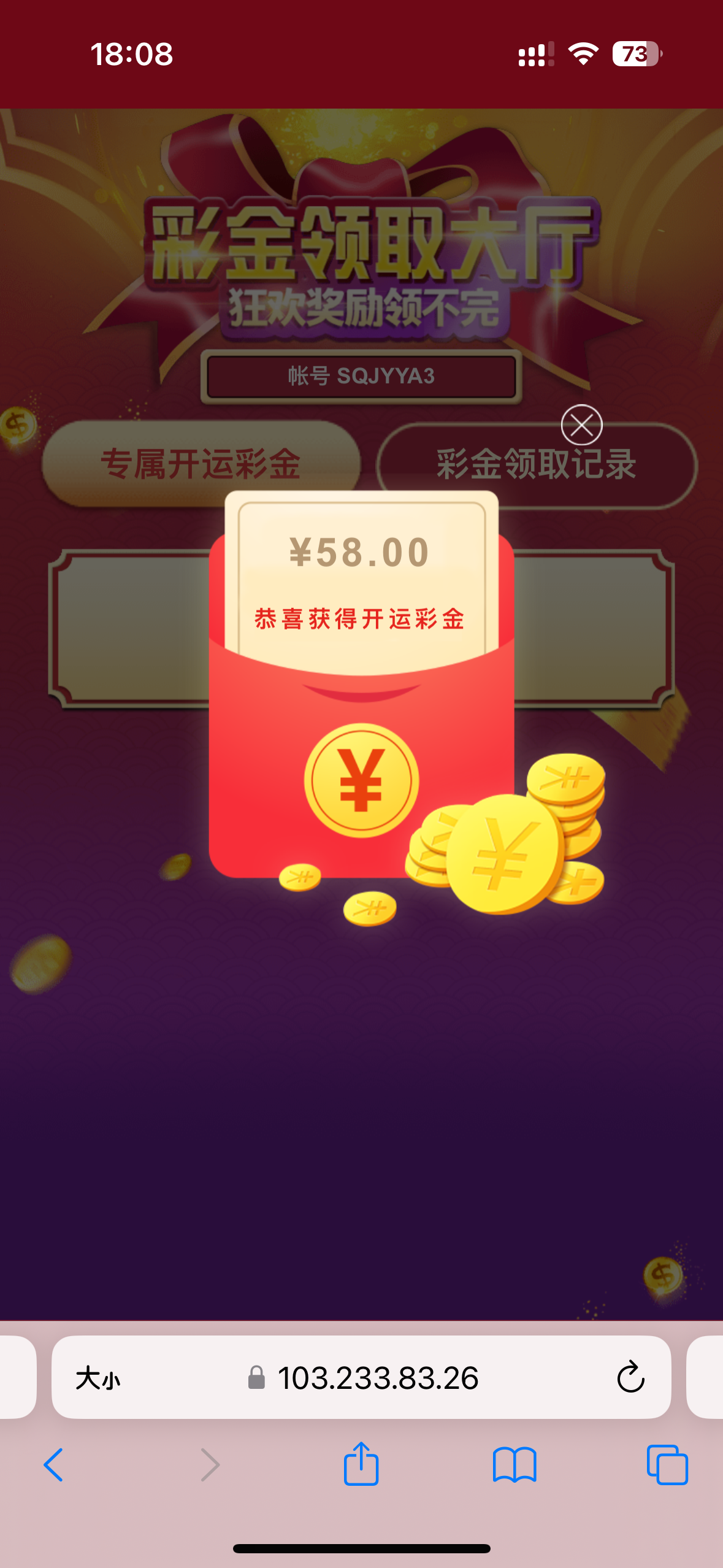 盛大登录回馈58彩金