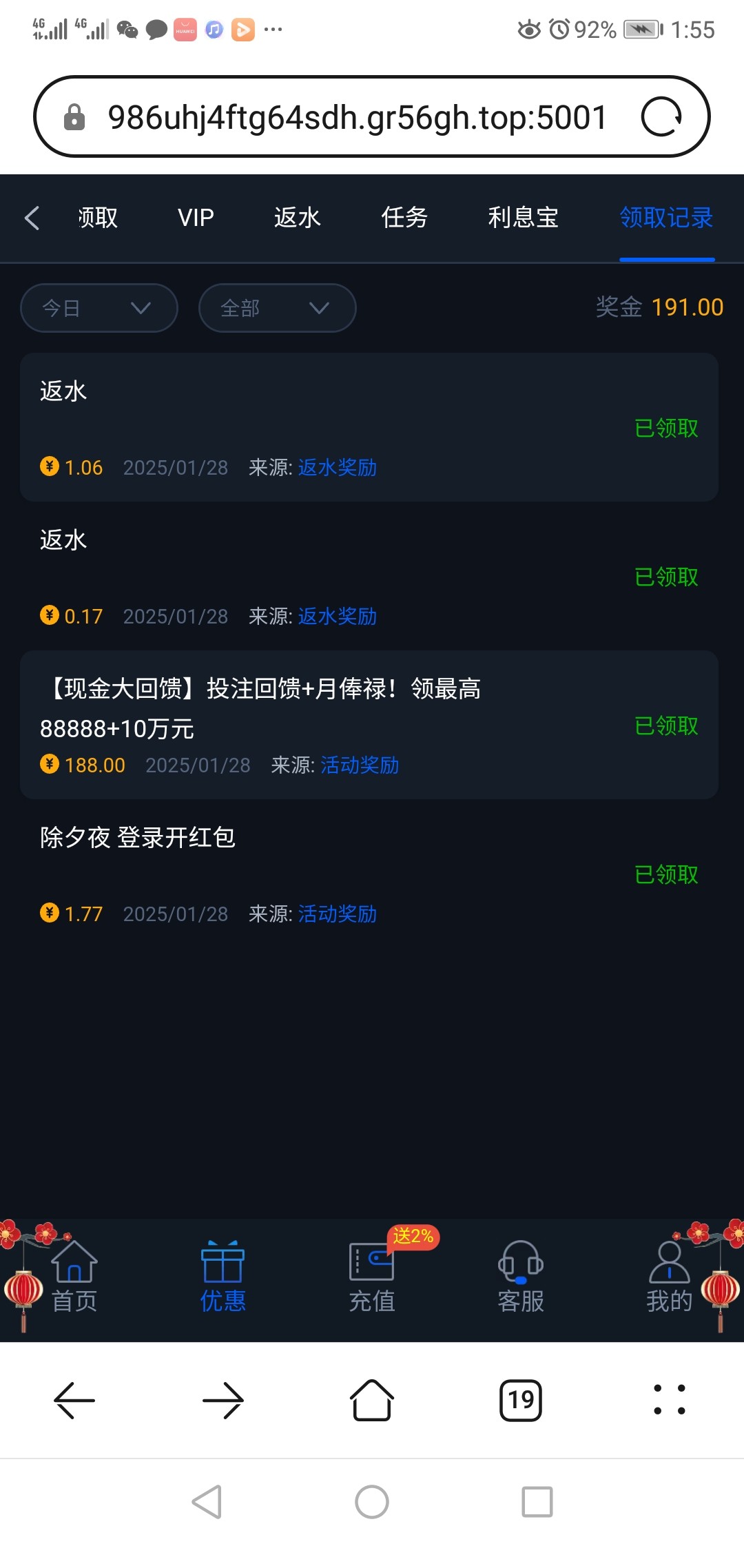 8053.com  回馈188,我不知道是不是送错了还是什么,我两个号另外一个号才3块。有送的 出款了整包烟,祝大家新年快乐。qn5ba93d671ed9829e