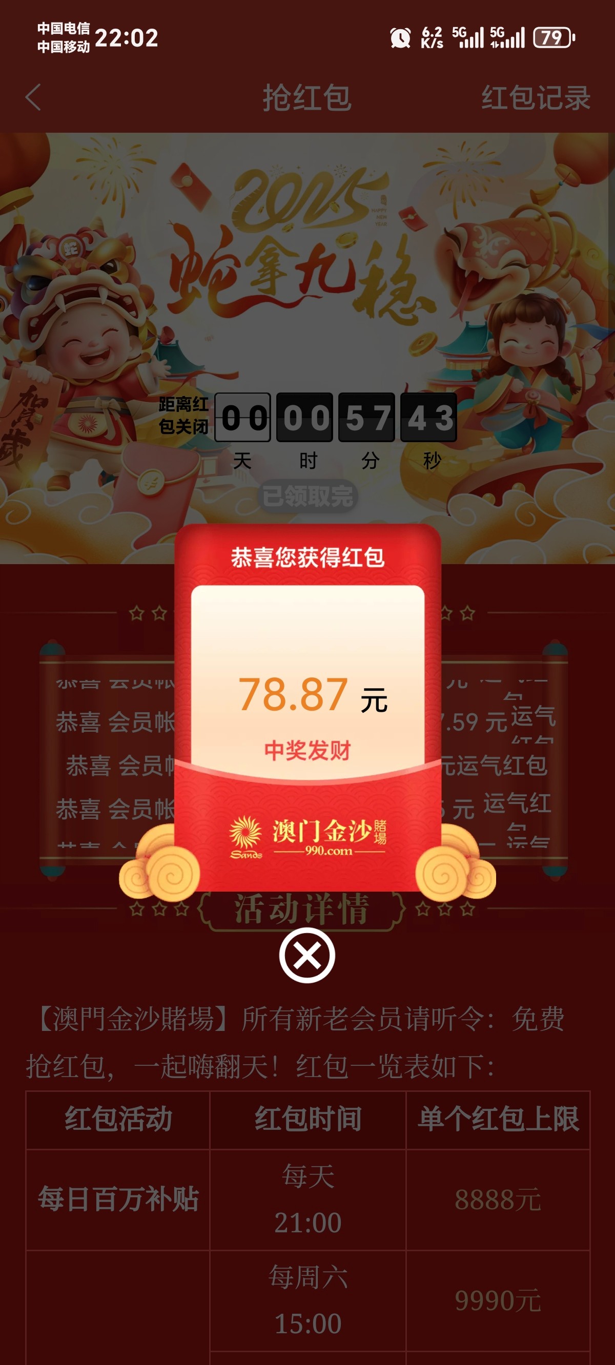 这个台抢红包基本全是一块多,不管你充值不充值,是输还是赢,红包永远是一块多
