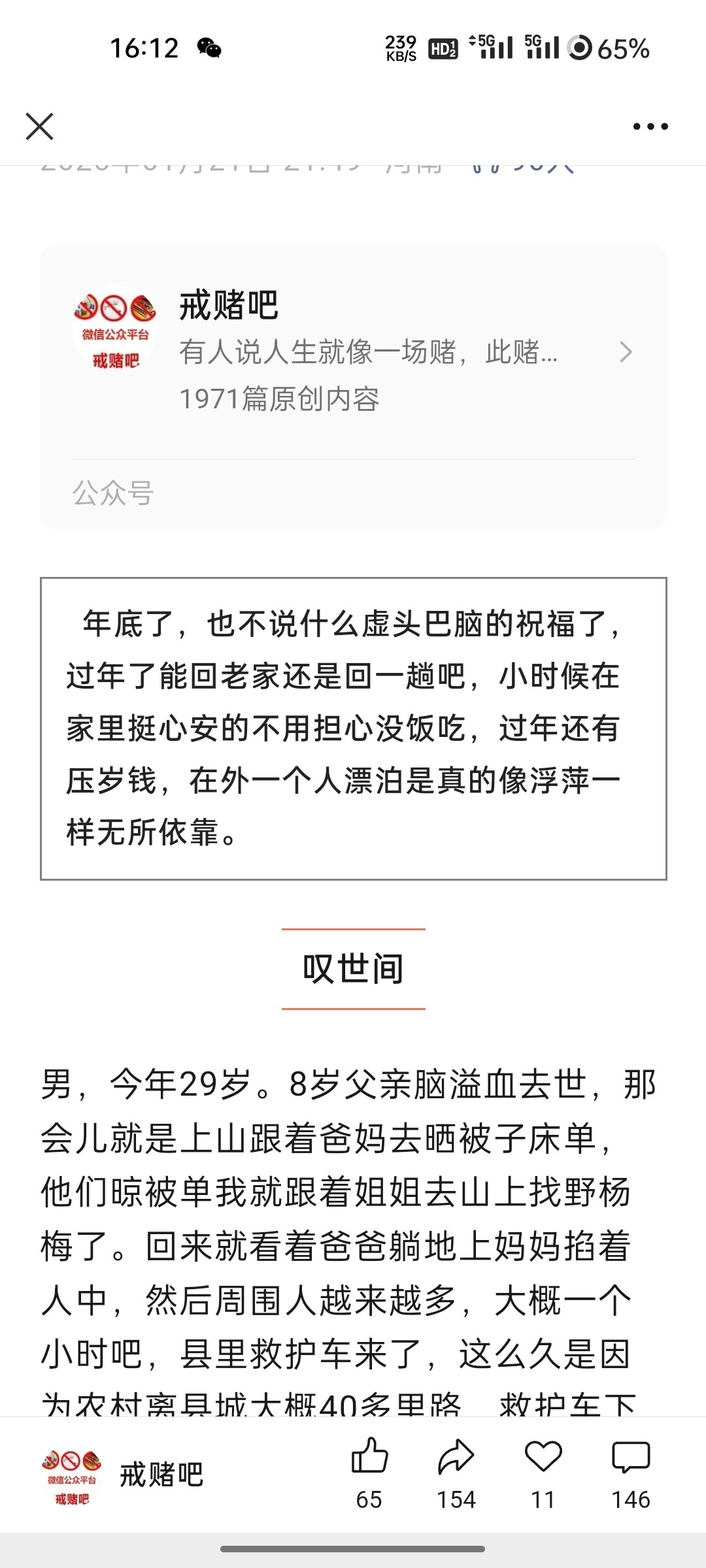 哥们别骗了,我在戒赌公众号里面看见过这段,你这复制粘贴有点恶心了吧