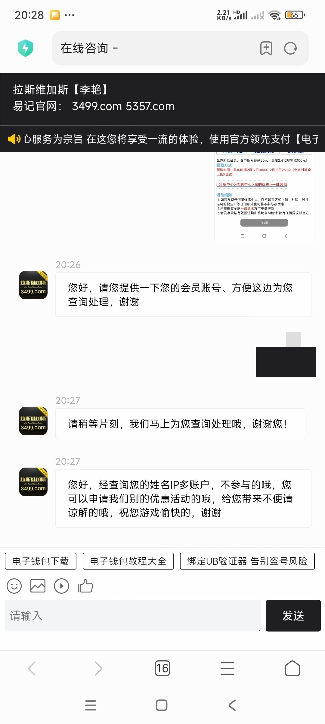 上次论坛老哥发的过年存50打3水元宵回馈100到账了,网址3499.com