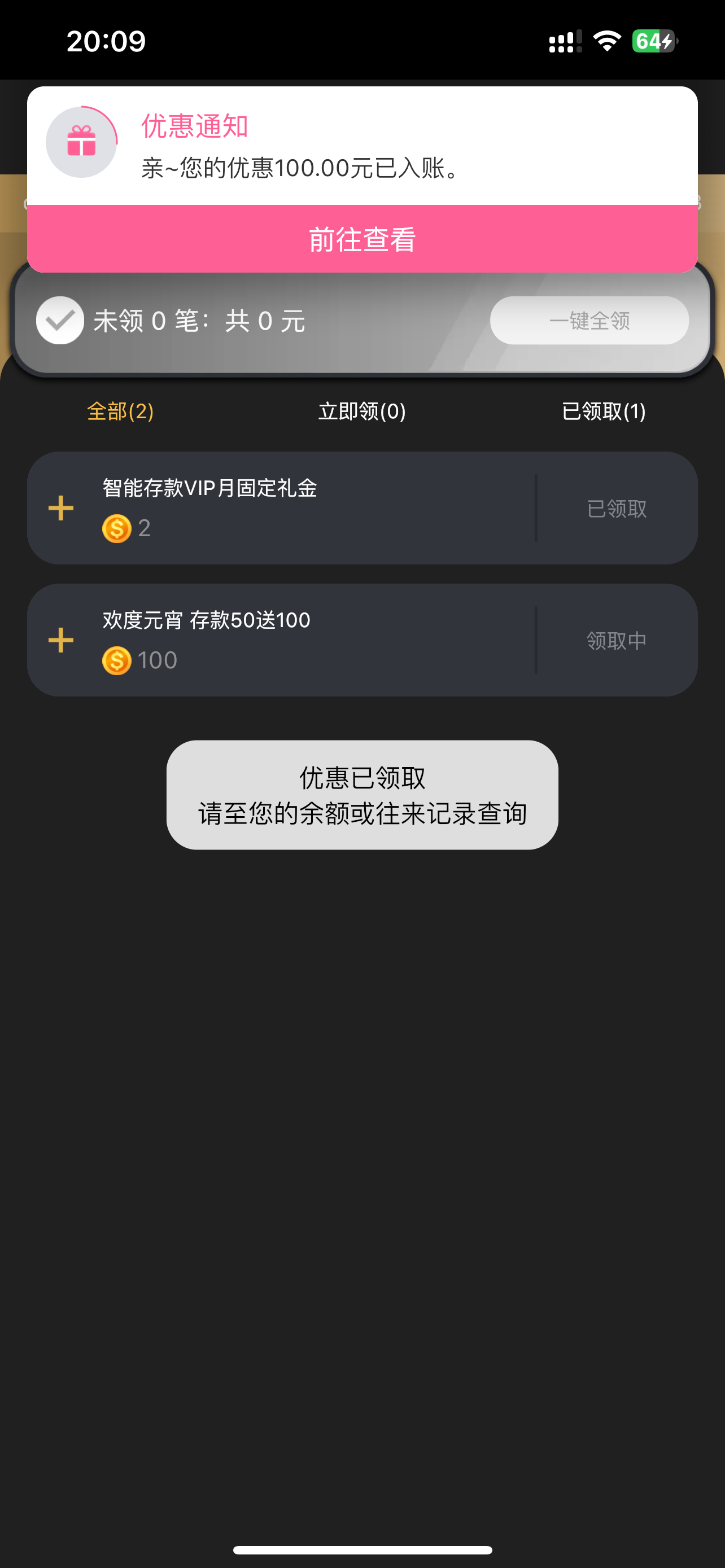 3499的100回馈金到了