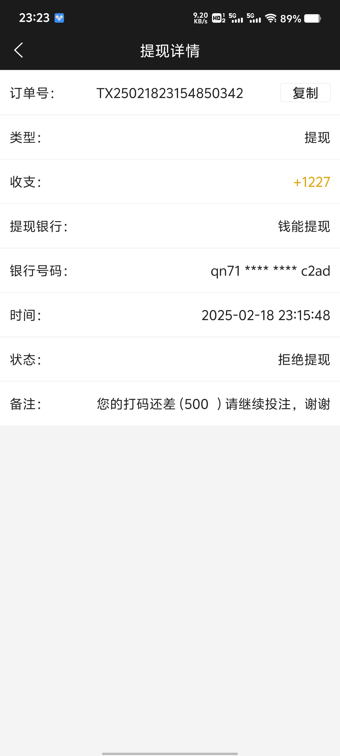 今天冲1000打了会儿鱼提现被拒绝了,说我低倍打码套利,罚了5000流水。5000流水打完又罚了2000,2000打完又罚了1500。问客服就是打码不够,让我继续打,这是铁了心让我输完啊,1000块打了1w流水还低倍打码套利?畜牲平台,现在啥活动都没有我套个寄吧啊