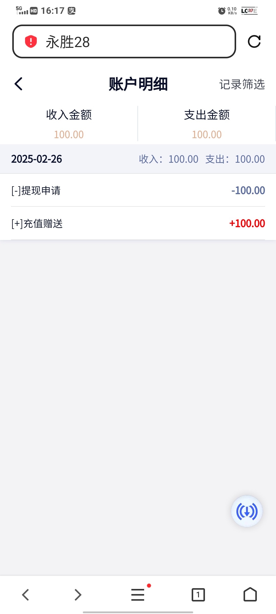 永胜28收到短信送100,可直接提现