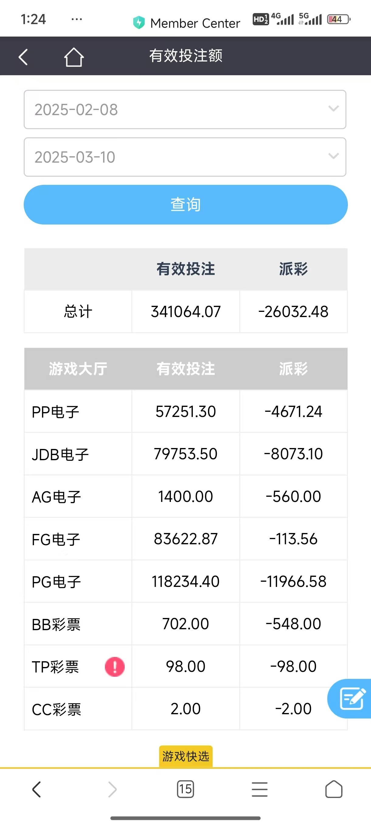 这个只能查询1个月的,1月到现在输了3  5万了,基本全是pp输的,一个高倍都没有