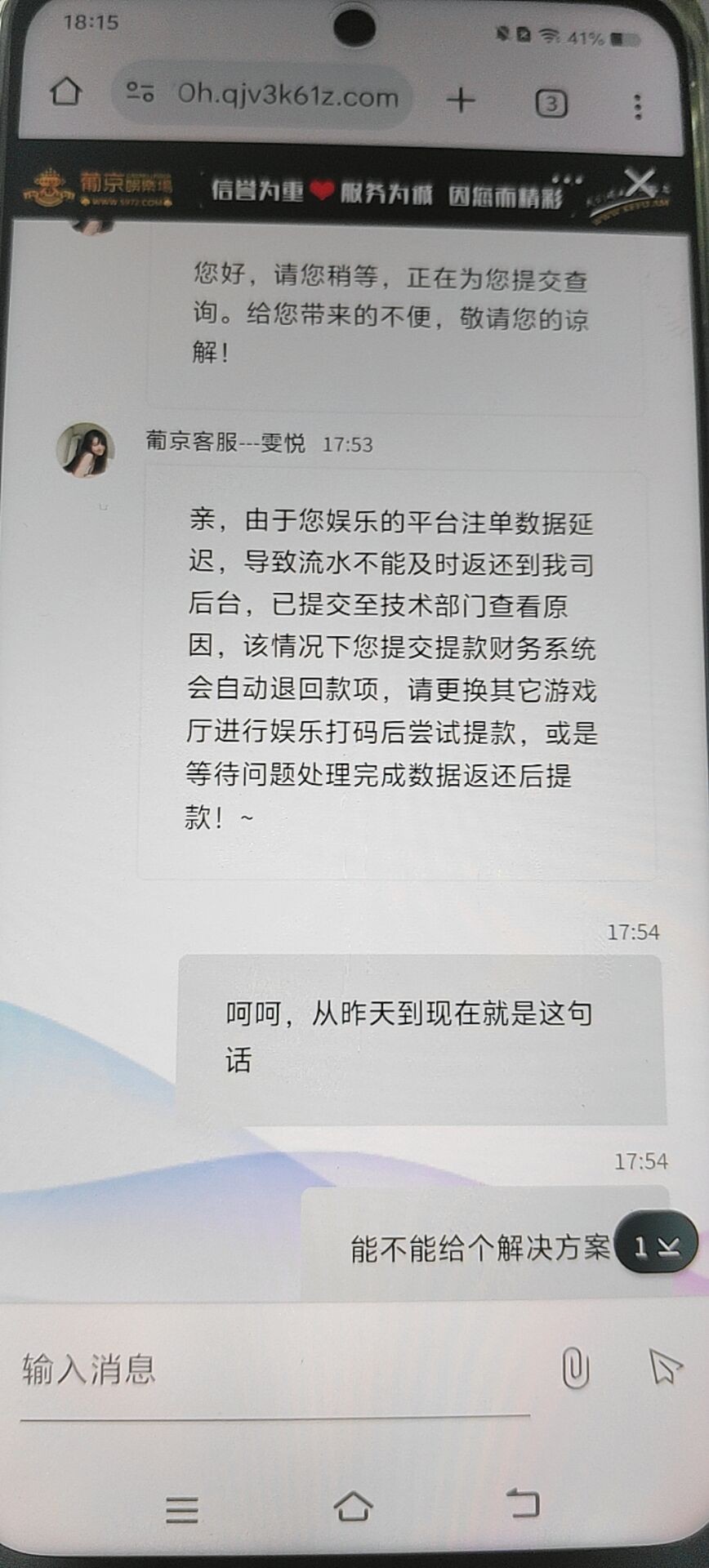 dajili888 是不是赢多了?我被他们这样搞过两次。。后面不敢去他们家玩大了,一问就是没更新,但是你流水反水都可以领了,
