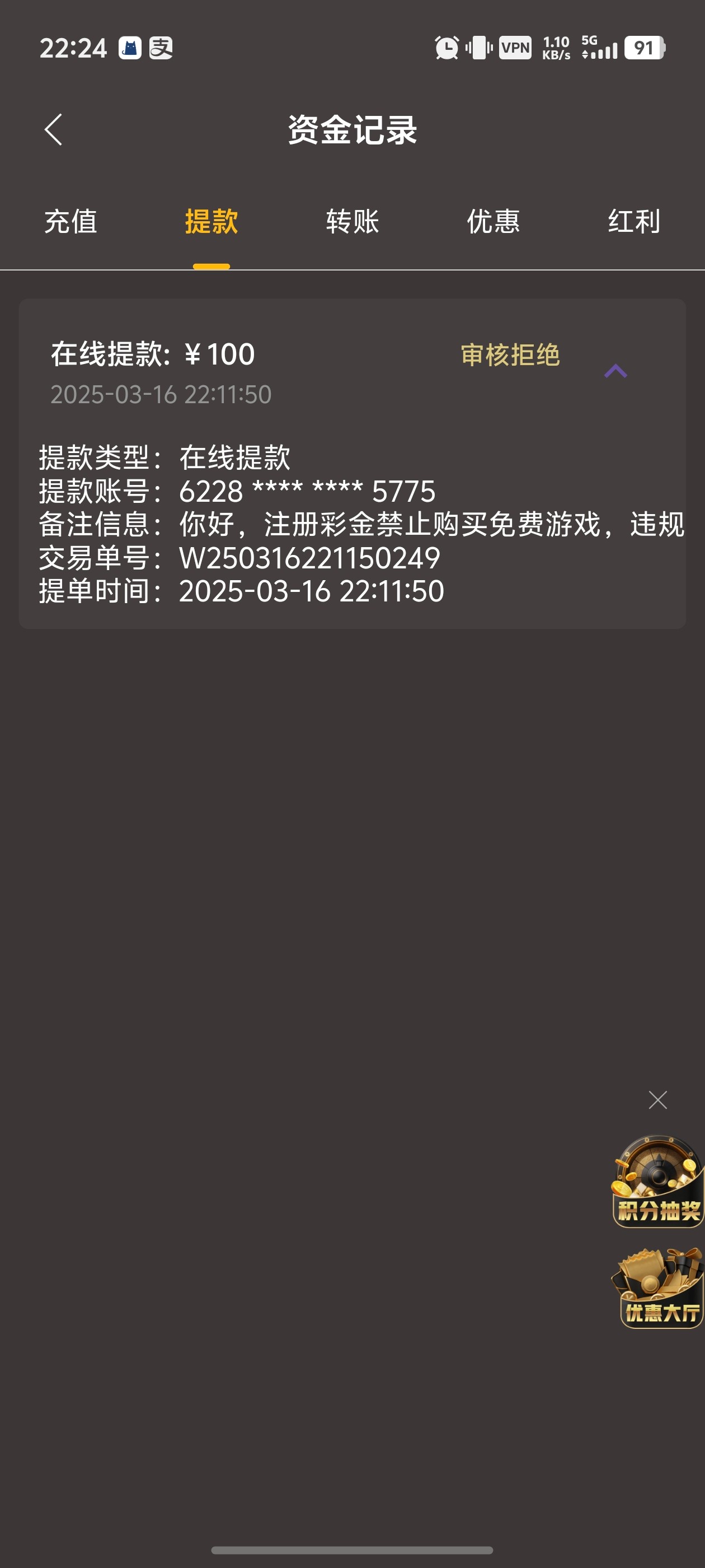 到优惠大厅---彩金红包内点击领取。 如果有会员领取不了,就是系统判定多IP的(如图),多账号领取出款包封号的