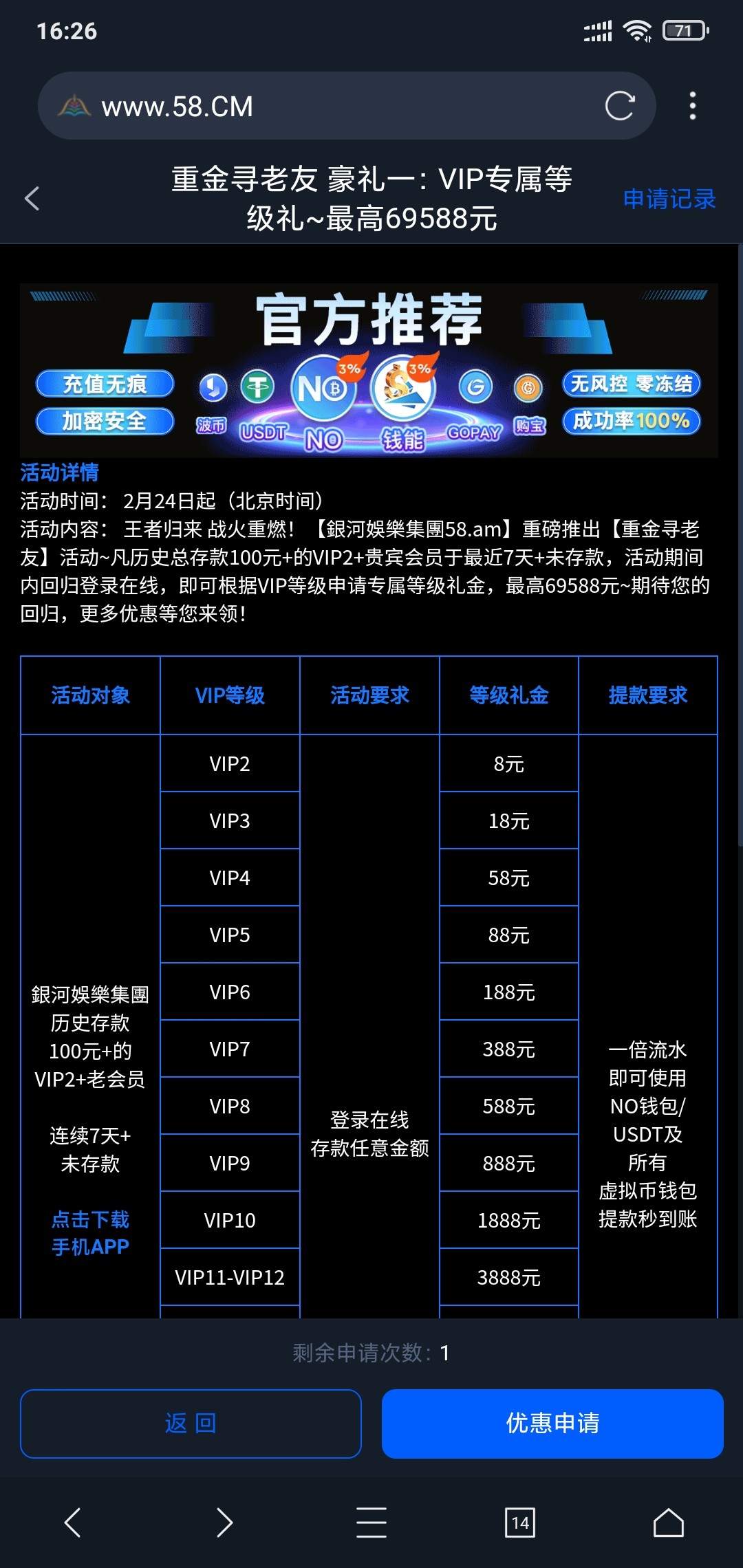 有v2以上跟充值过100的去,