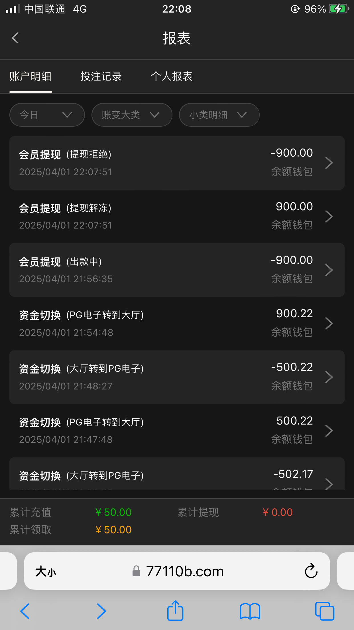 充了50提了500本来暴了600的流水不够刷流水杀了100
