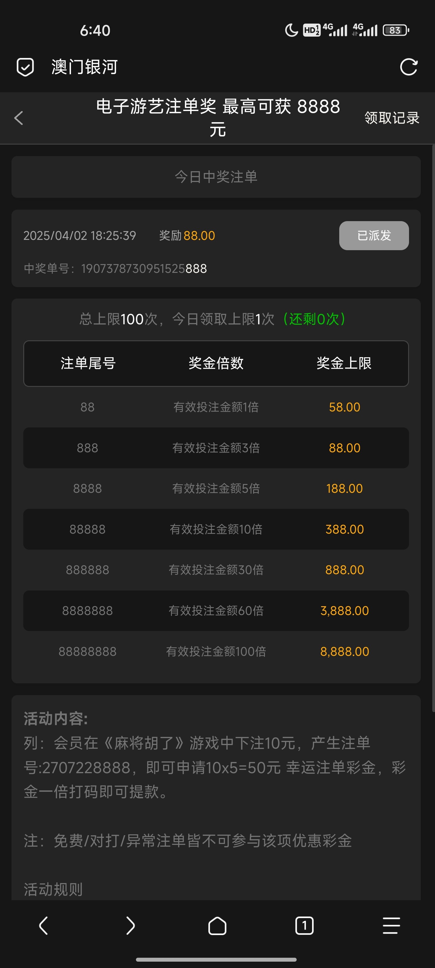 30一注的免费还中个注单奖,哈哈哈
