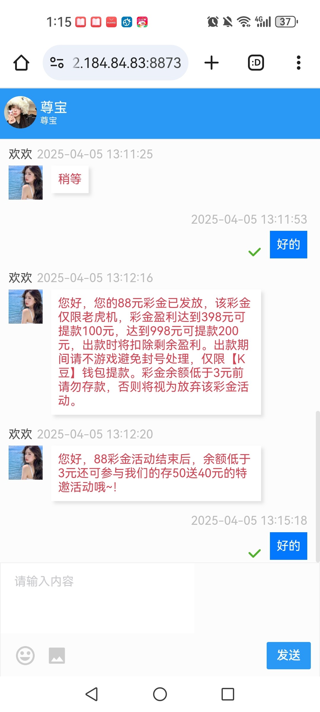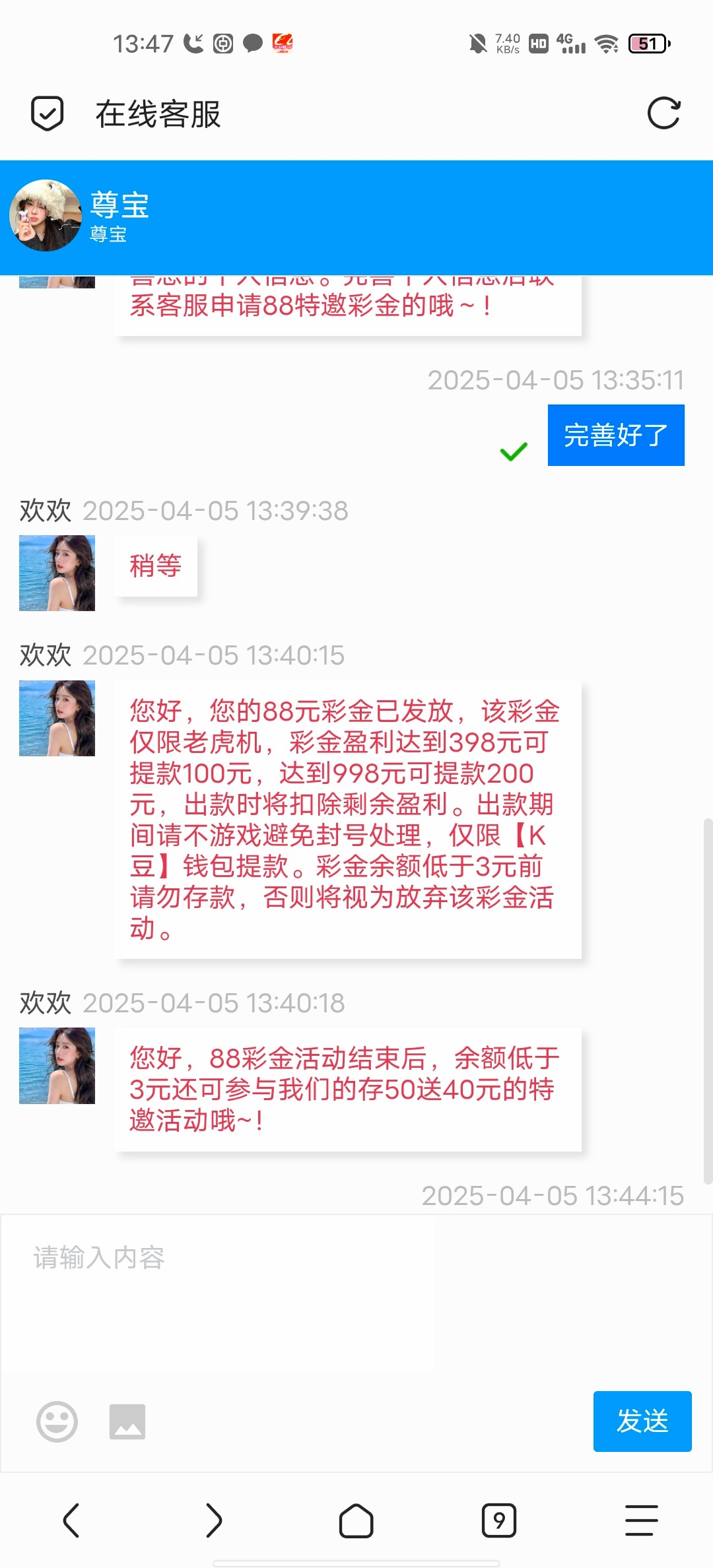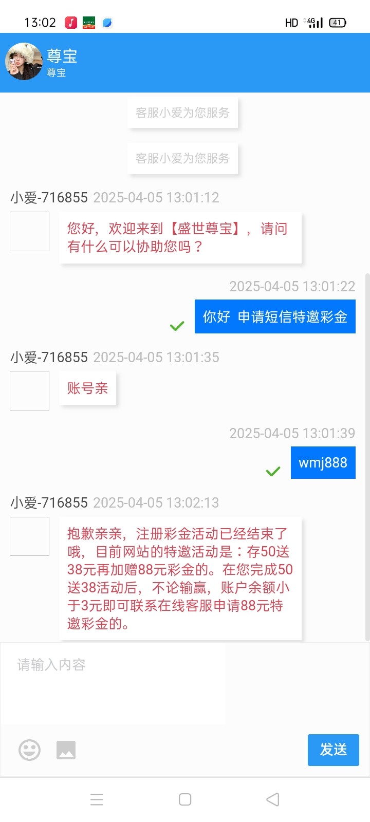 新用户注册完善银行卡,手机号,邮箱等信息联系客服碰瓷短信特邀彩金,碰到就是88彩金,具体规则问客服