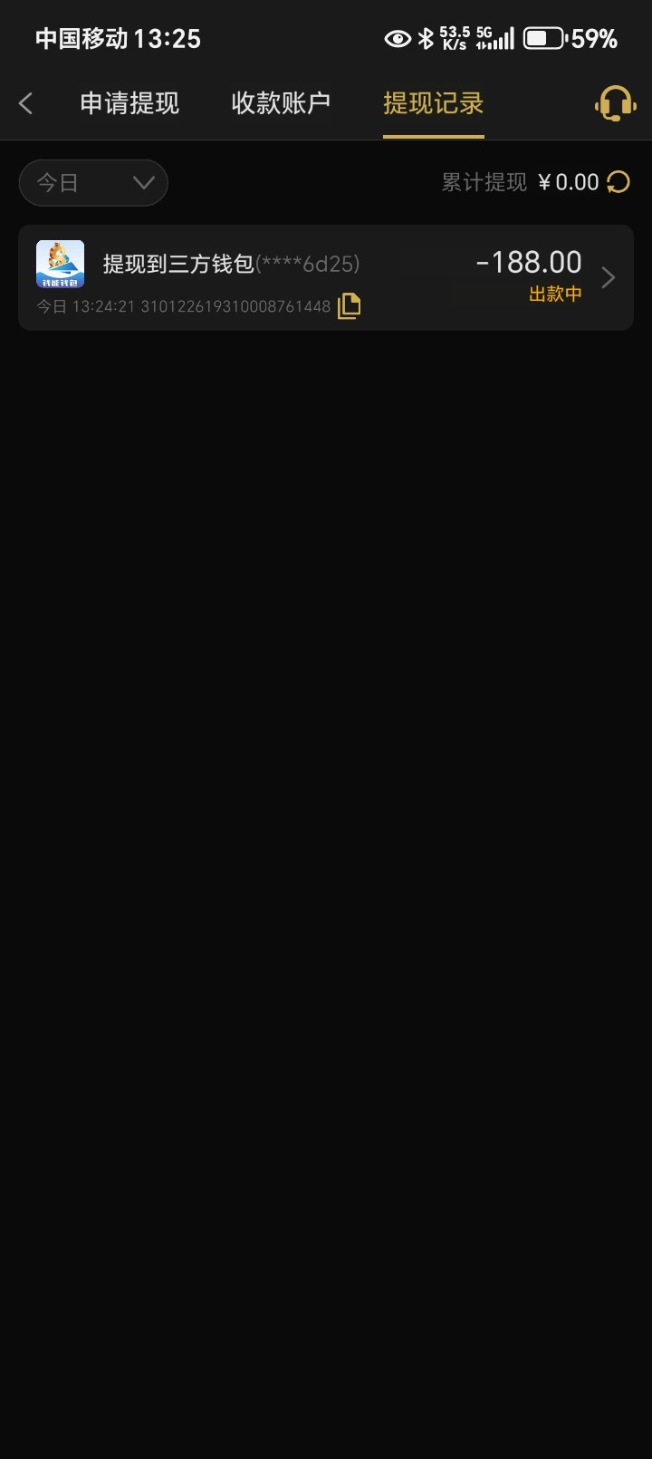 提现到了