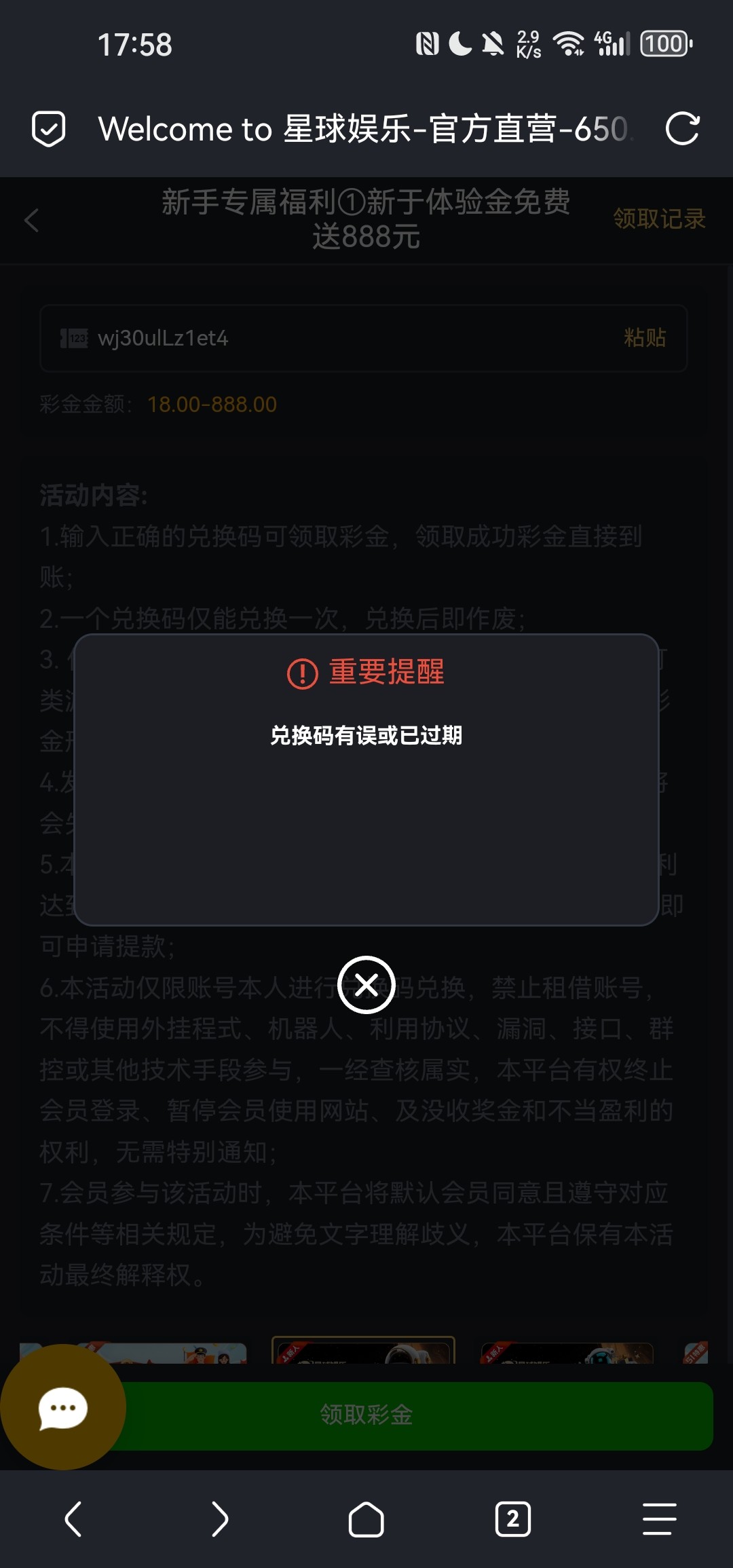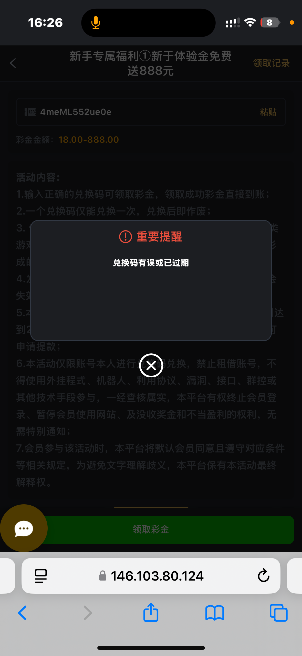 兑换码有误