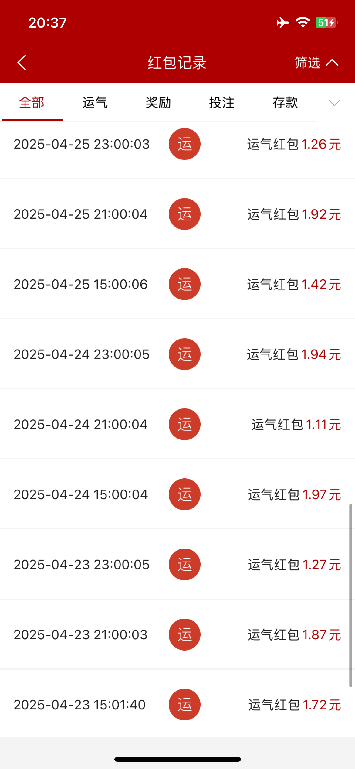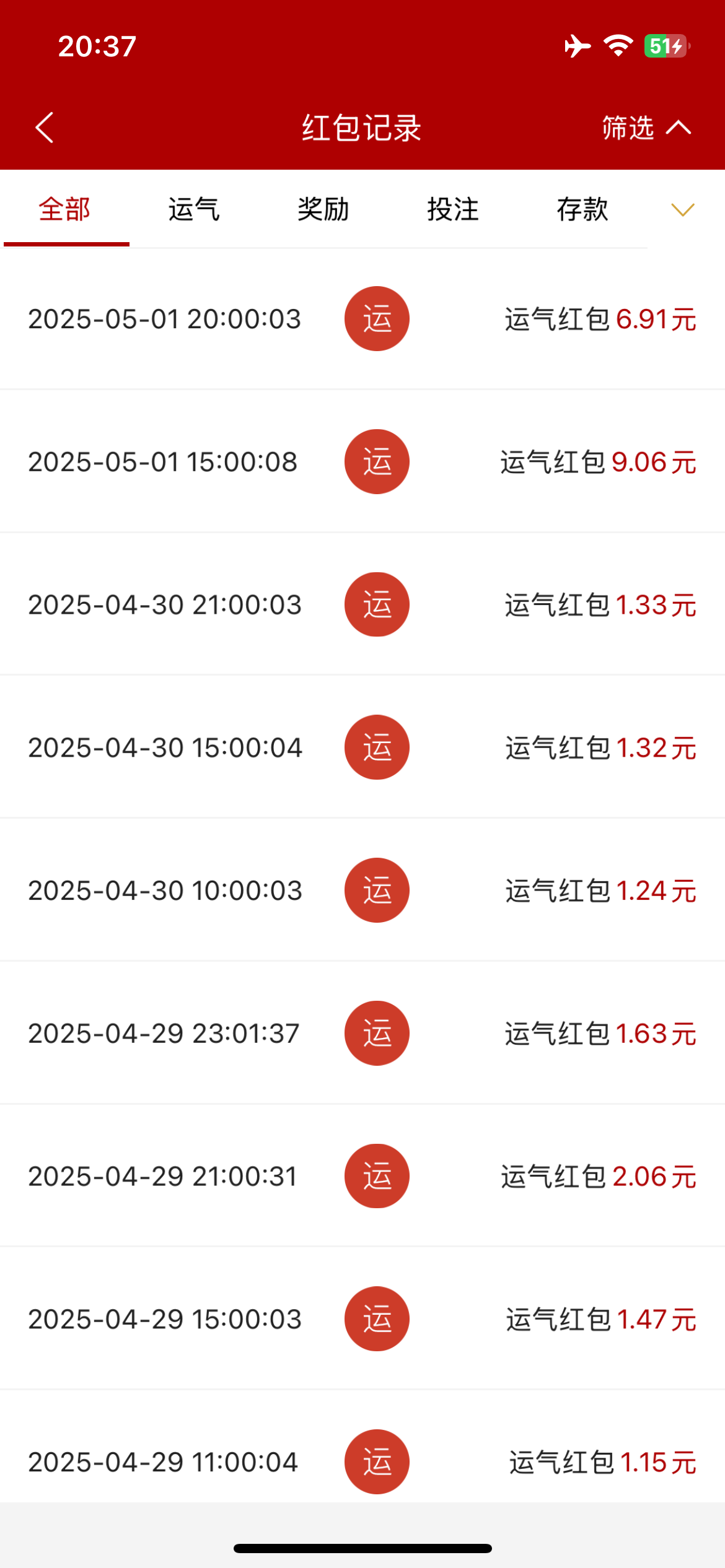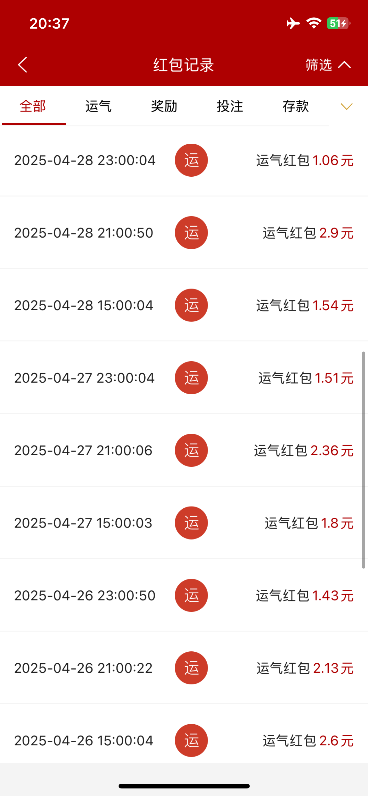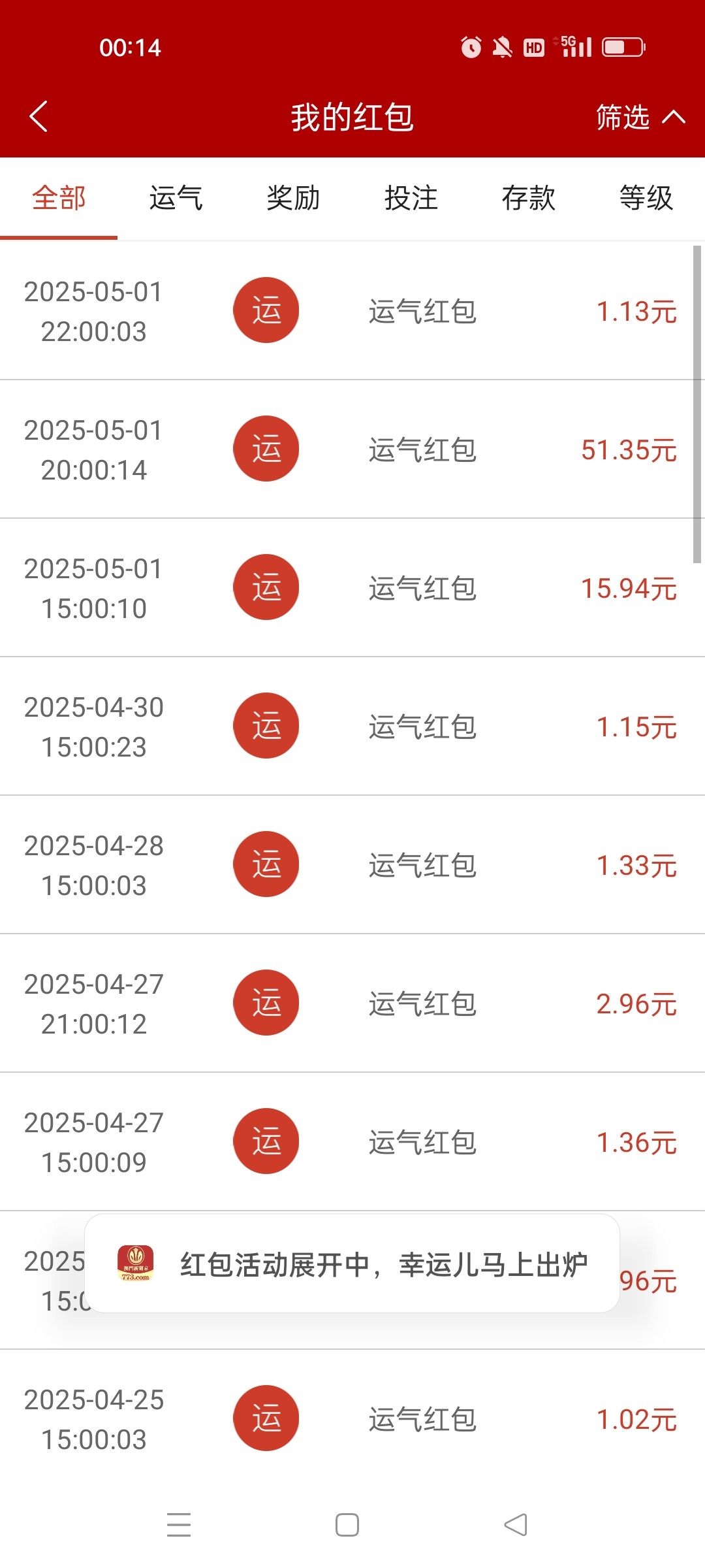 就晚上8点抢到一次几十块的,之前一天存一万都是一两块,去玩两分钟还抢完了