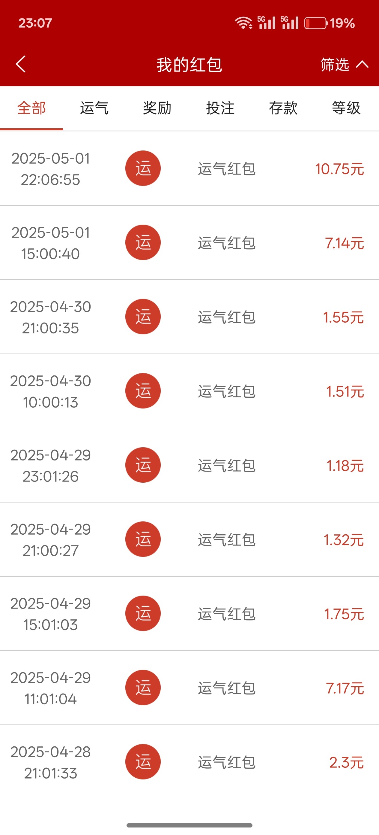 我今天还说了的 我钱能系几个号 v8  v5  v4抢红包重开没超过6块钱   唯一一次两位数还是凌晨的神秘红包