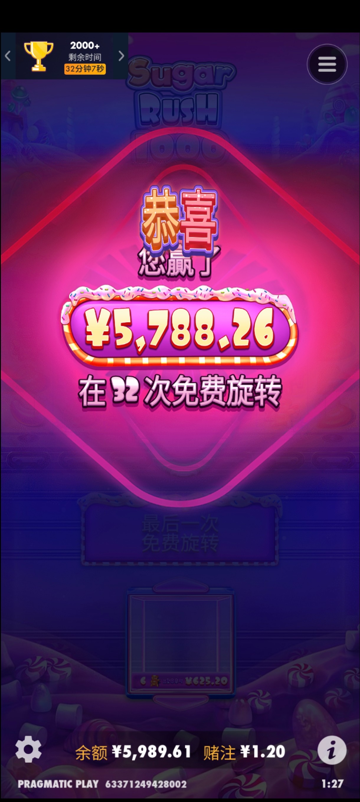 昨天pg赏金大对决,免中免中免 总共30次免费 我以为要来大的了  结果是拉了坨大的  爆了59块 100倍都没有