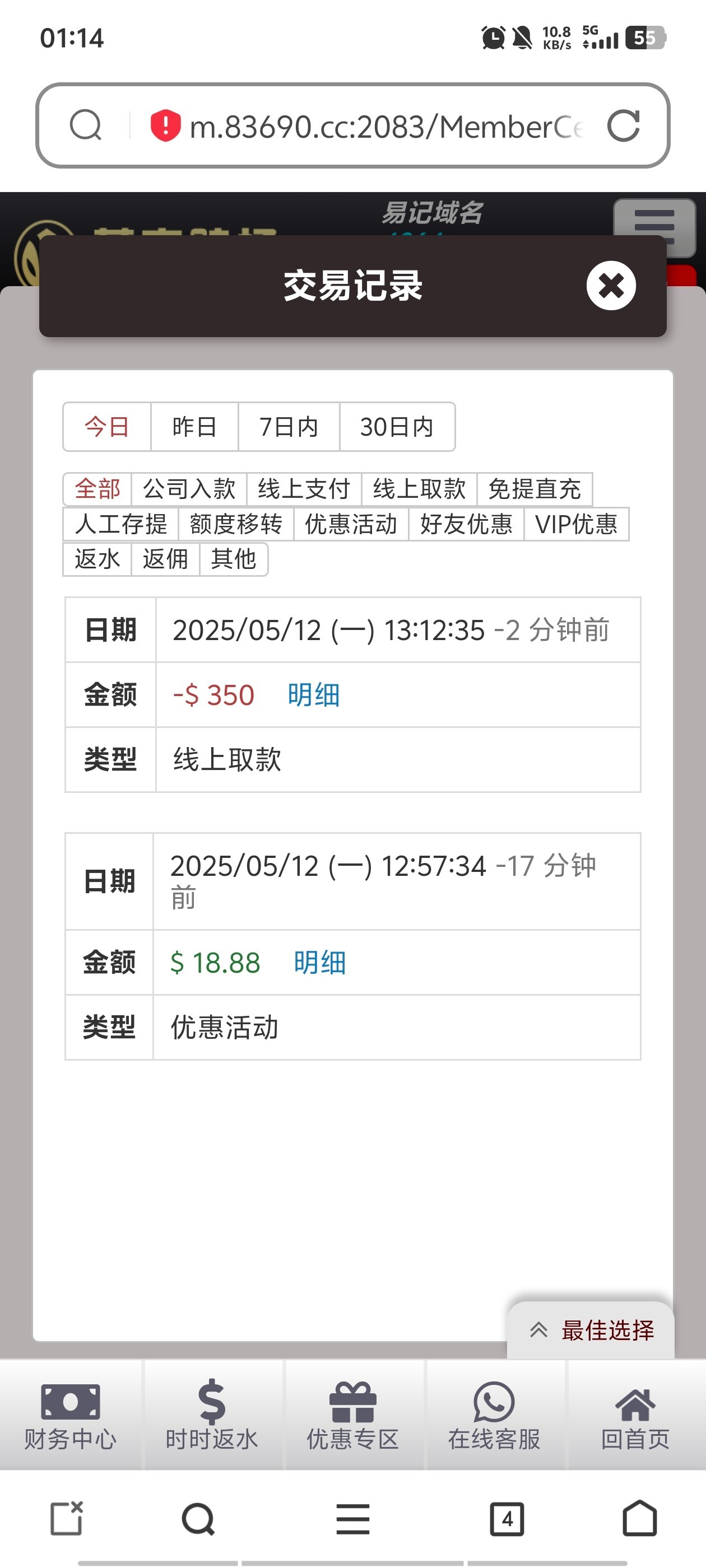 回访彩金打到350提,第一次提被扣到188,最高只能提那么多,但是只能用k宝和他们网站的钱包,k宝绑的不是我的,他们的网站我又不想实名,已经挂逼了但就是不想卖资料,才188实名个鸡巴,钱能台五一到现在一直输没赢过,妈的这逼台18.8回访打到350,提了被扣,想着免提直充再提别的钱包,188又干到900,还是不行,直接欢乐豆输完睡觉