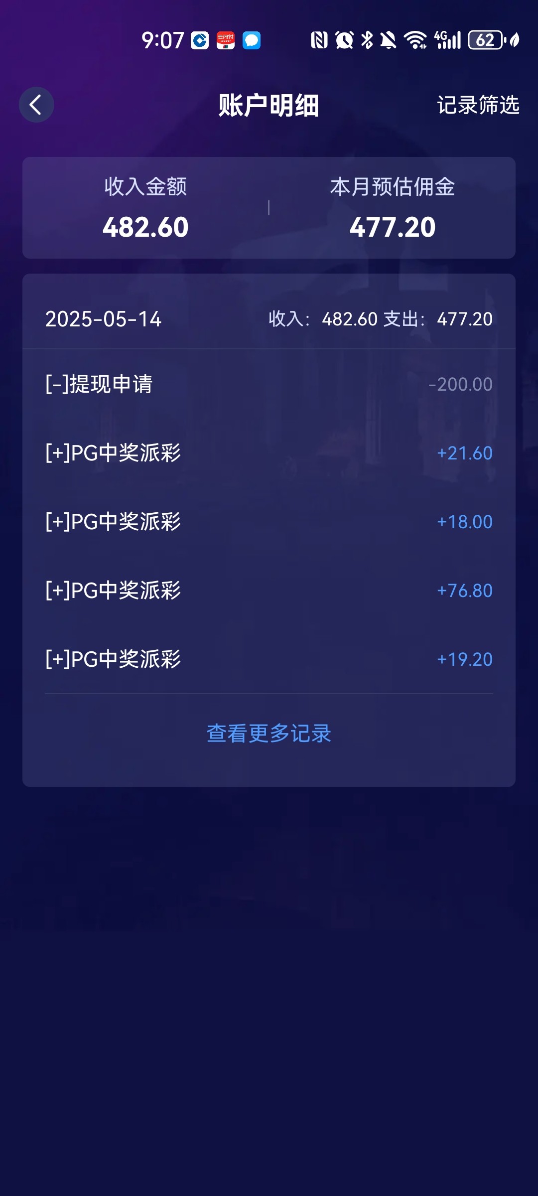 这几天在收手了,小打小闹的玩,勾八领了这个28拉电子输了又存了100送进去,难受死了,以后彩金都不领了