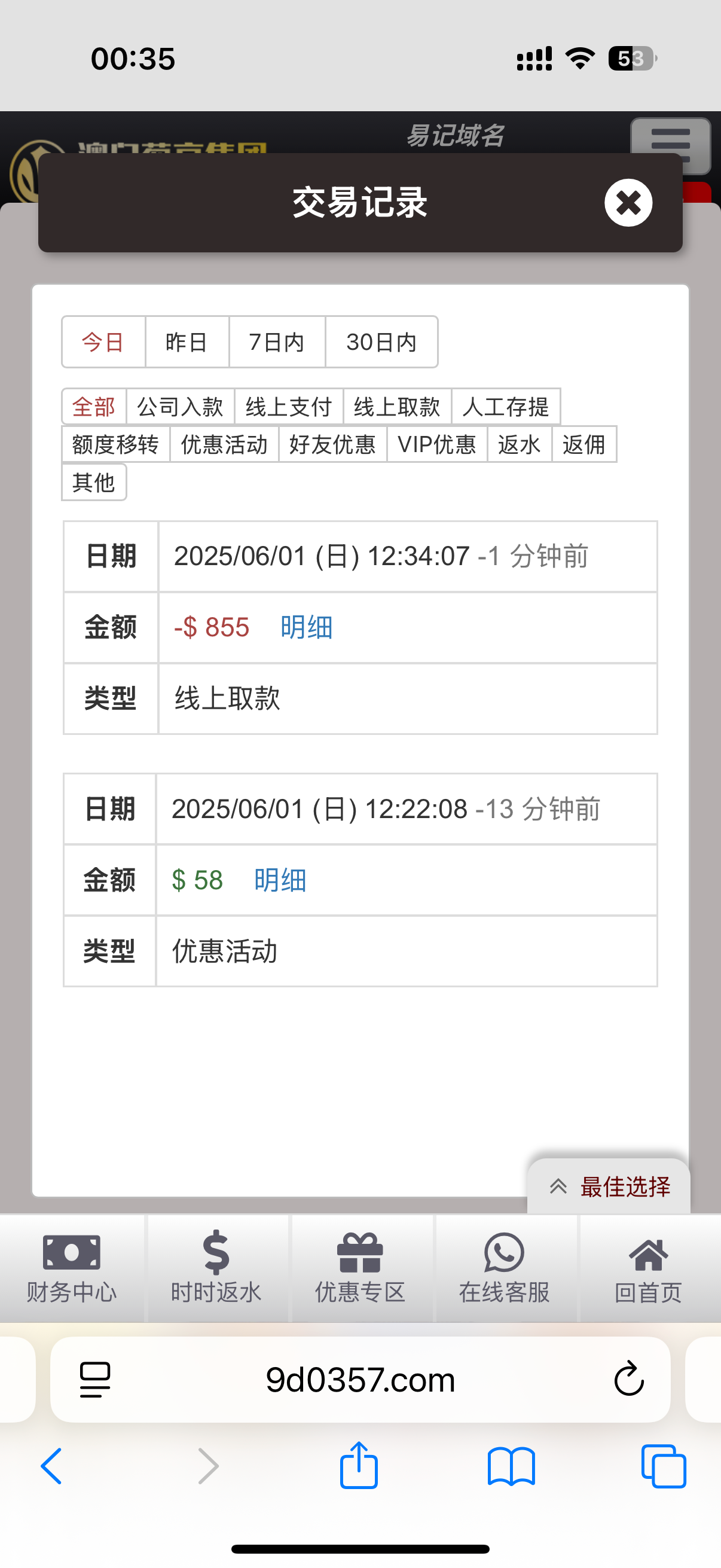 充值几千的号说我没资格领历史注册和存款回馈,把我笑死,这台控分控得很恶心,不建议充值完,白嫖到就赶紧跑。