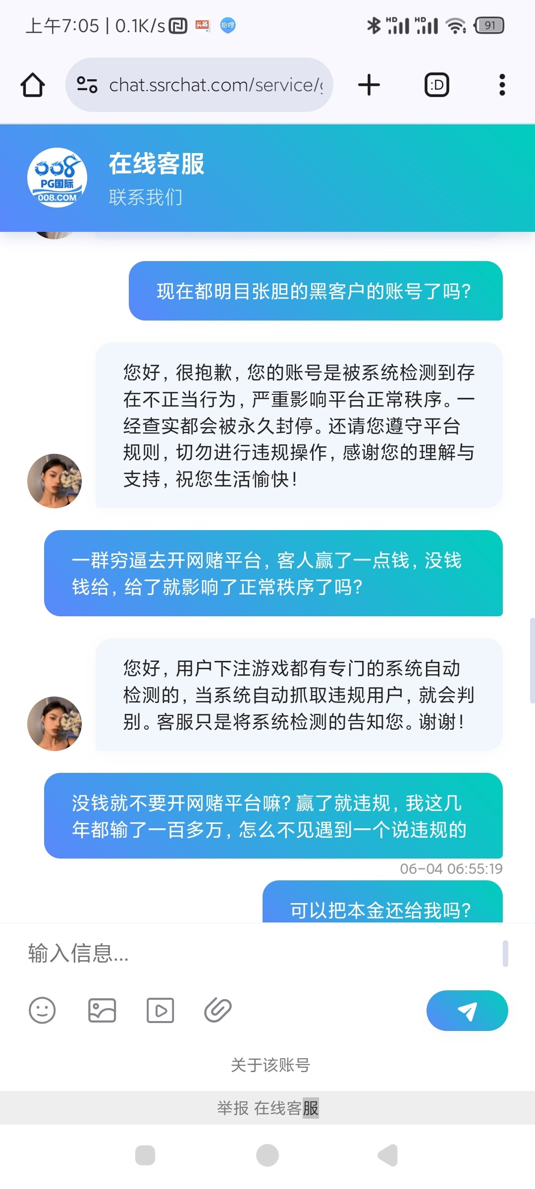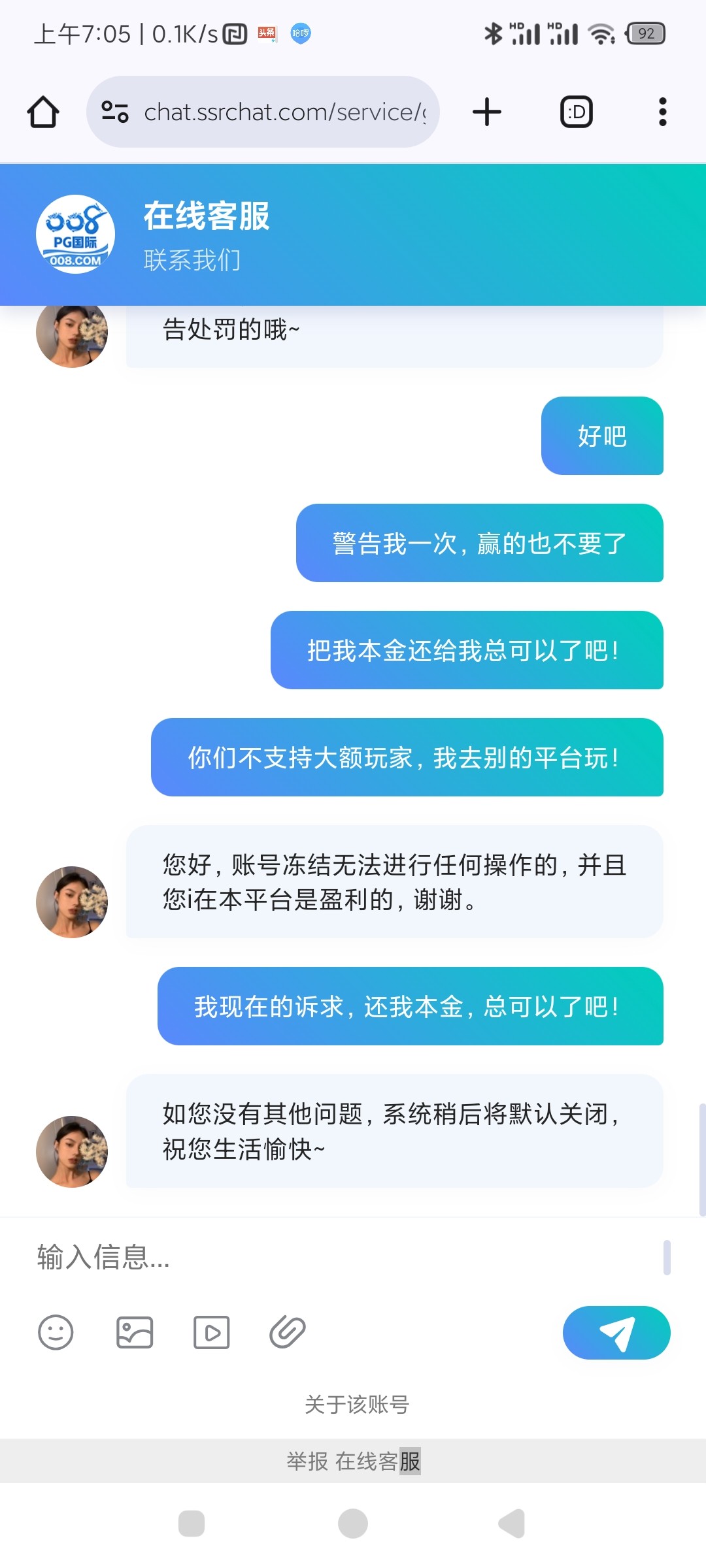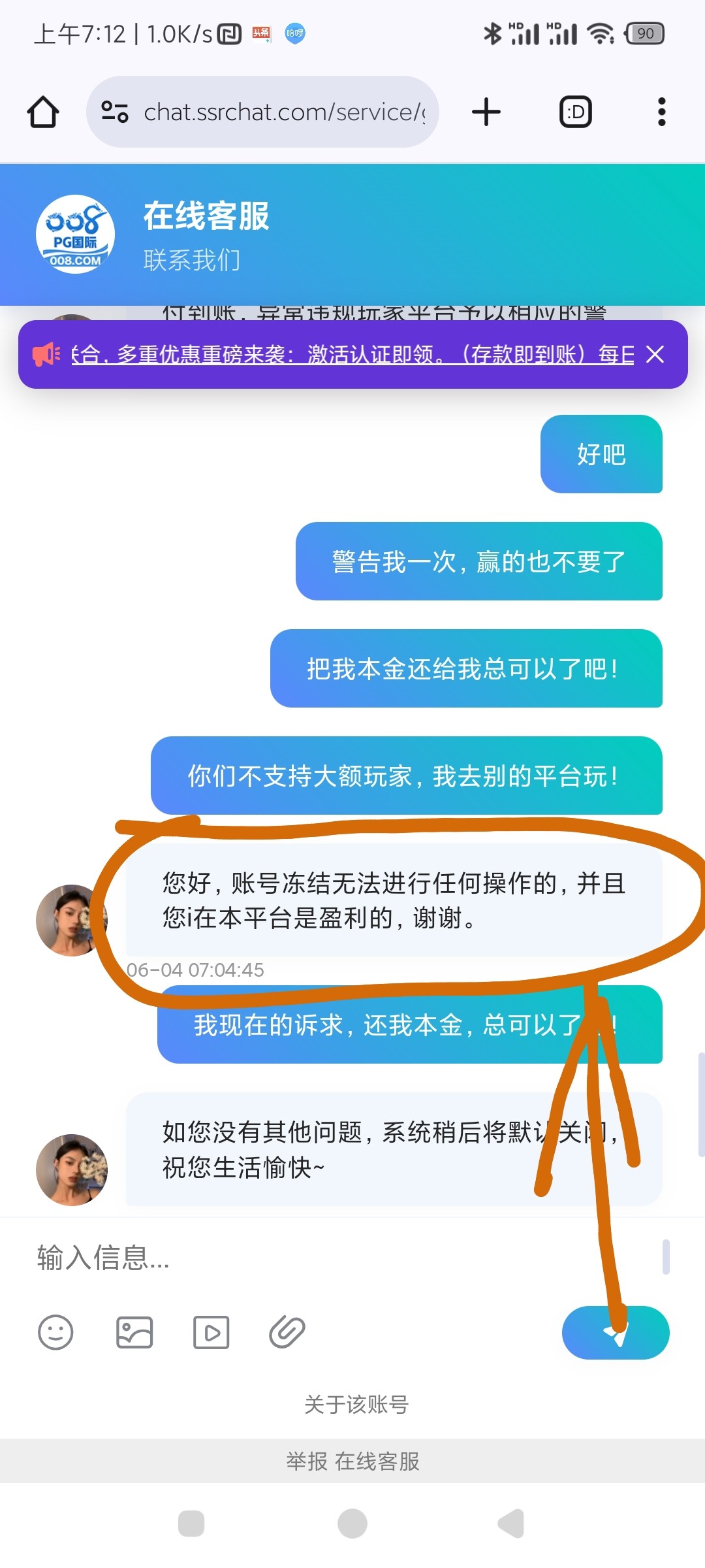 帮你叼过了,他们说你并没有在他们那里输钱,这种靠充值彩金,吸引你去玩的野鸡台,充值提现都不要超过一千都会黑你