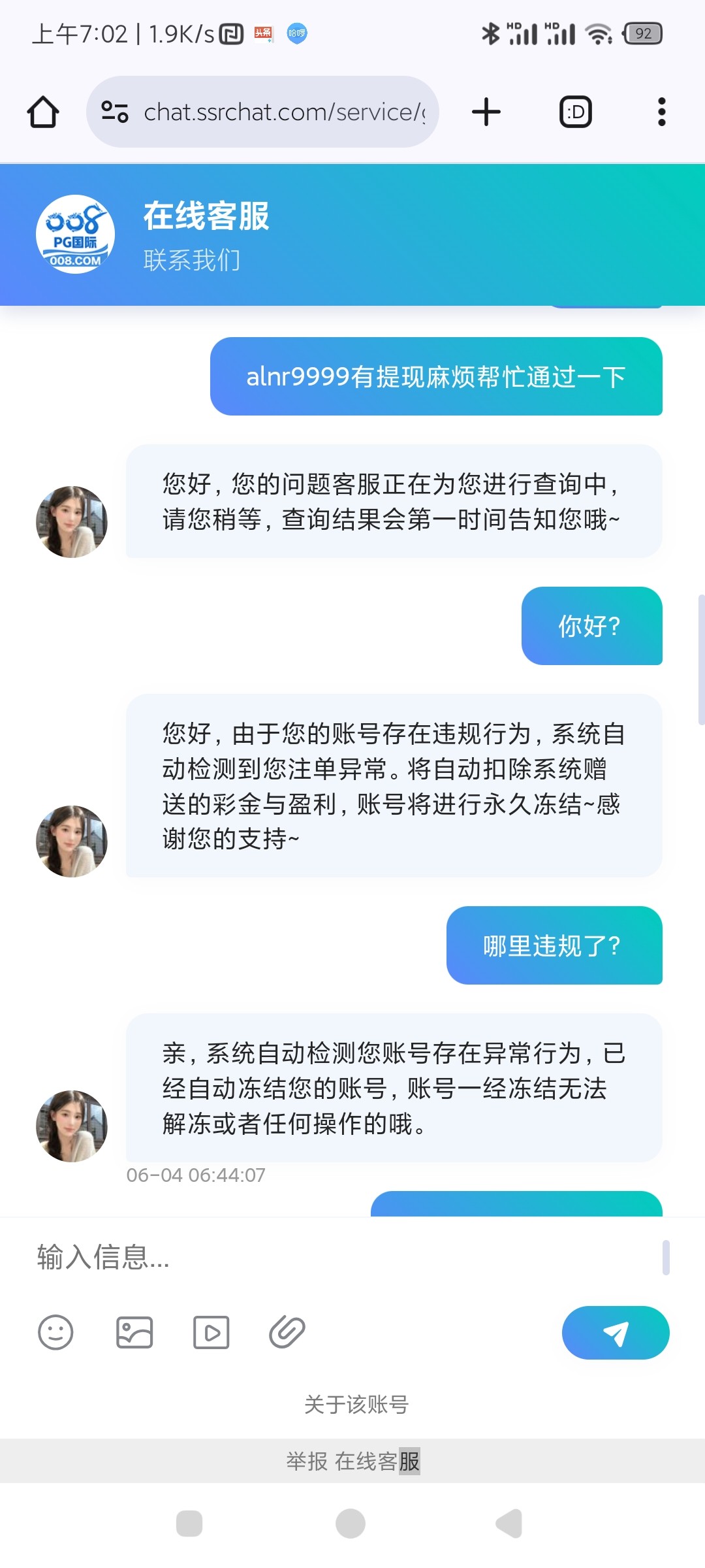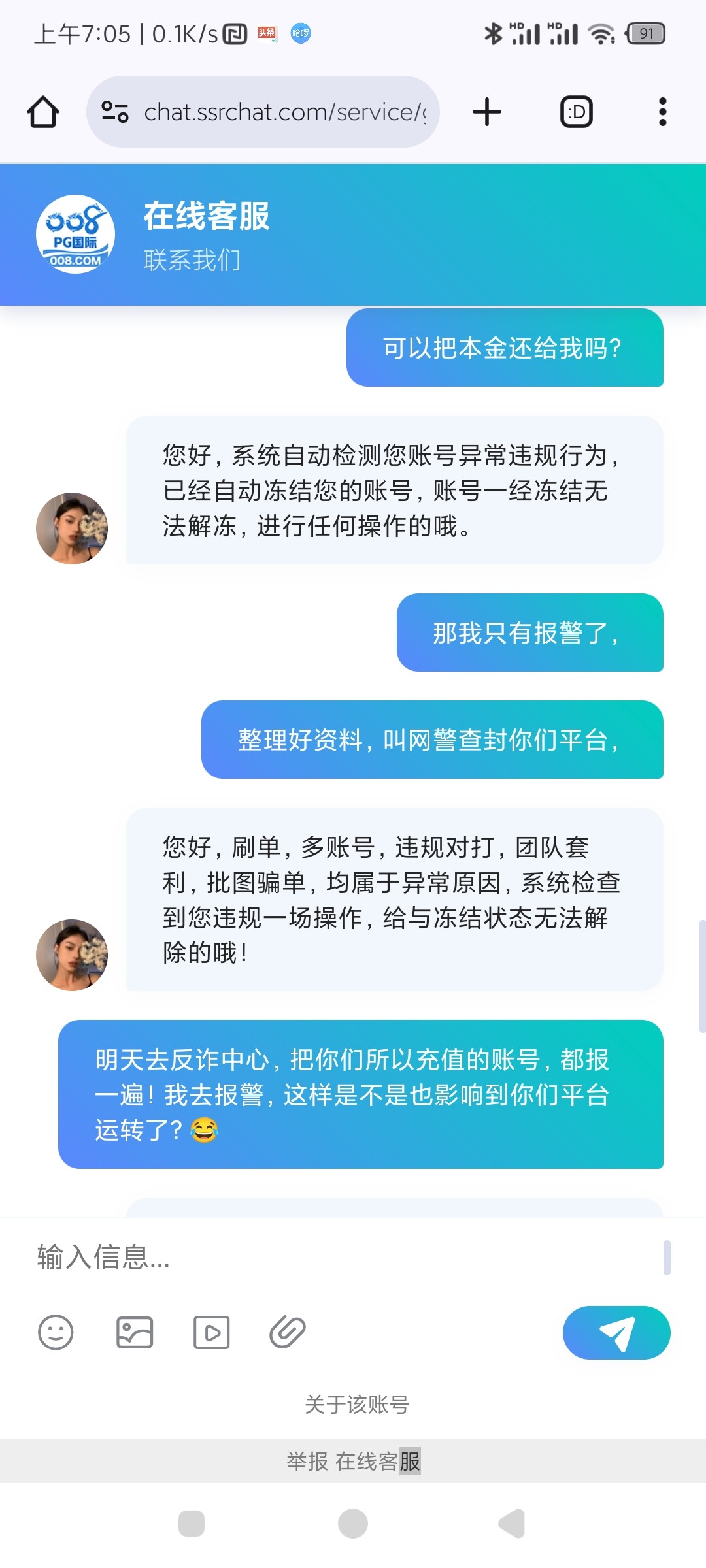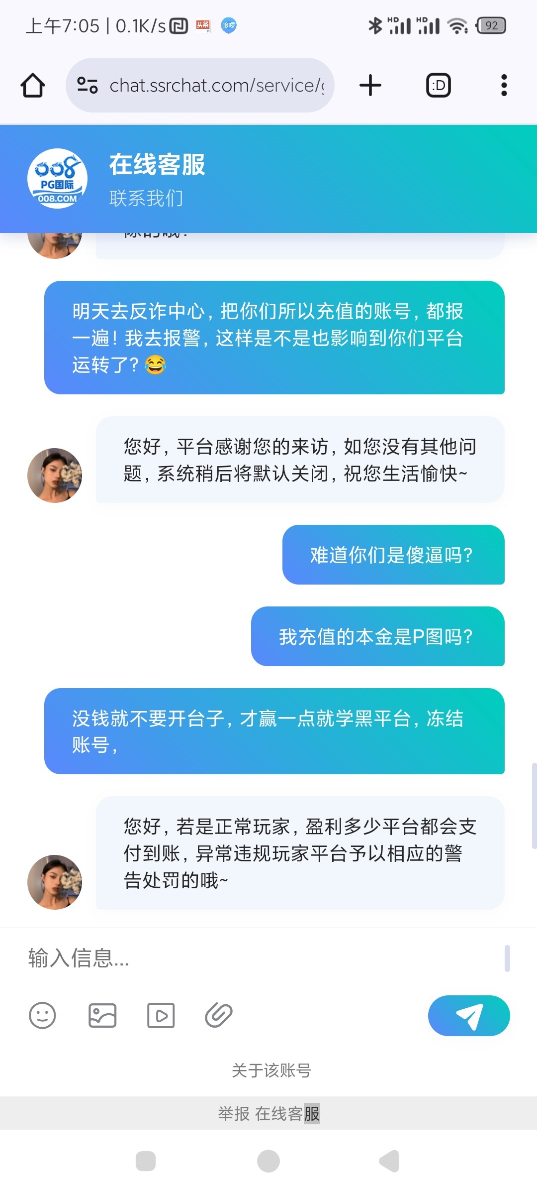 帮你叼过了,他们说你并没有在他们那里输钱,这种靠充值彩金,吸引你去玩的野鸡台,充值提现都不要超过一千都会黑你