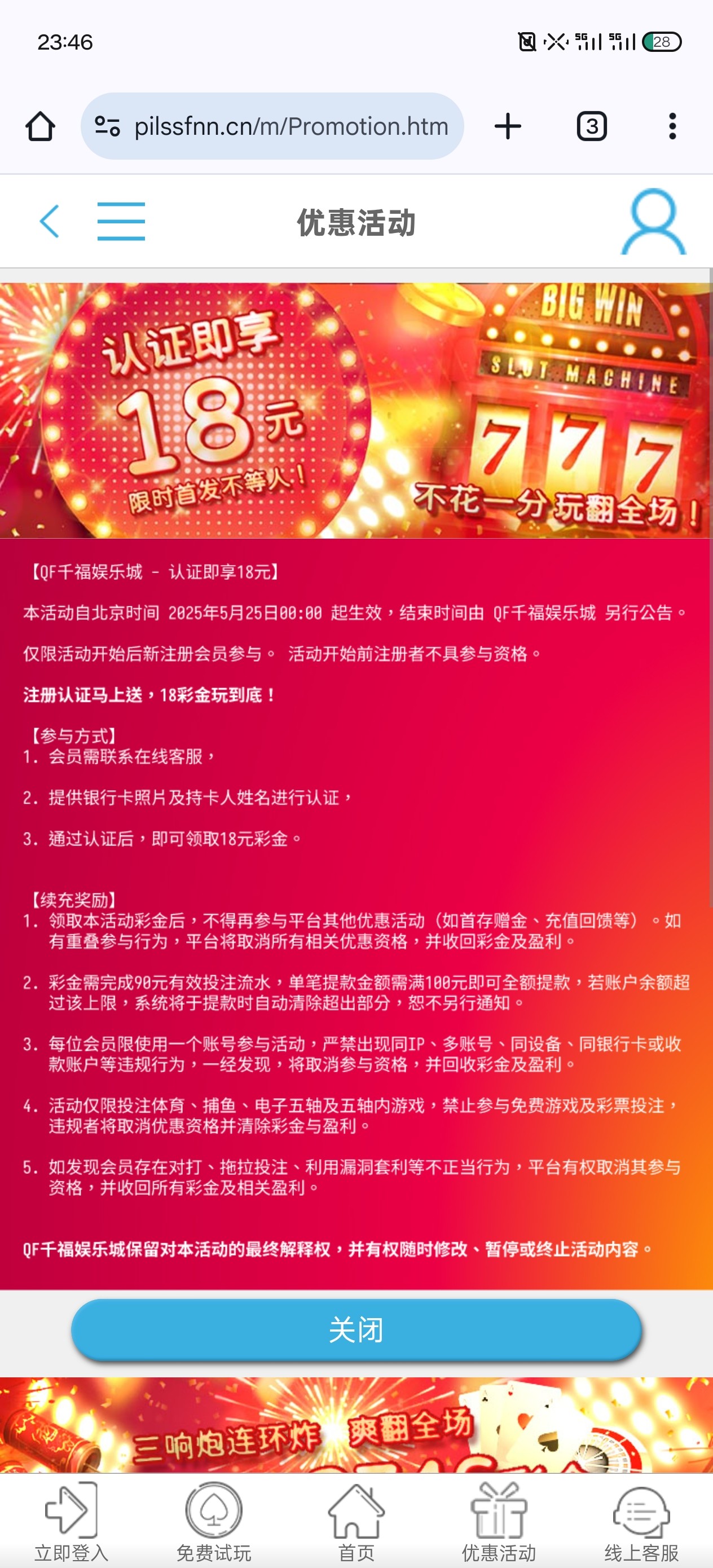 千福认证领取18彩金