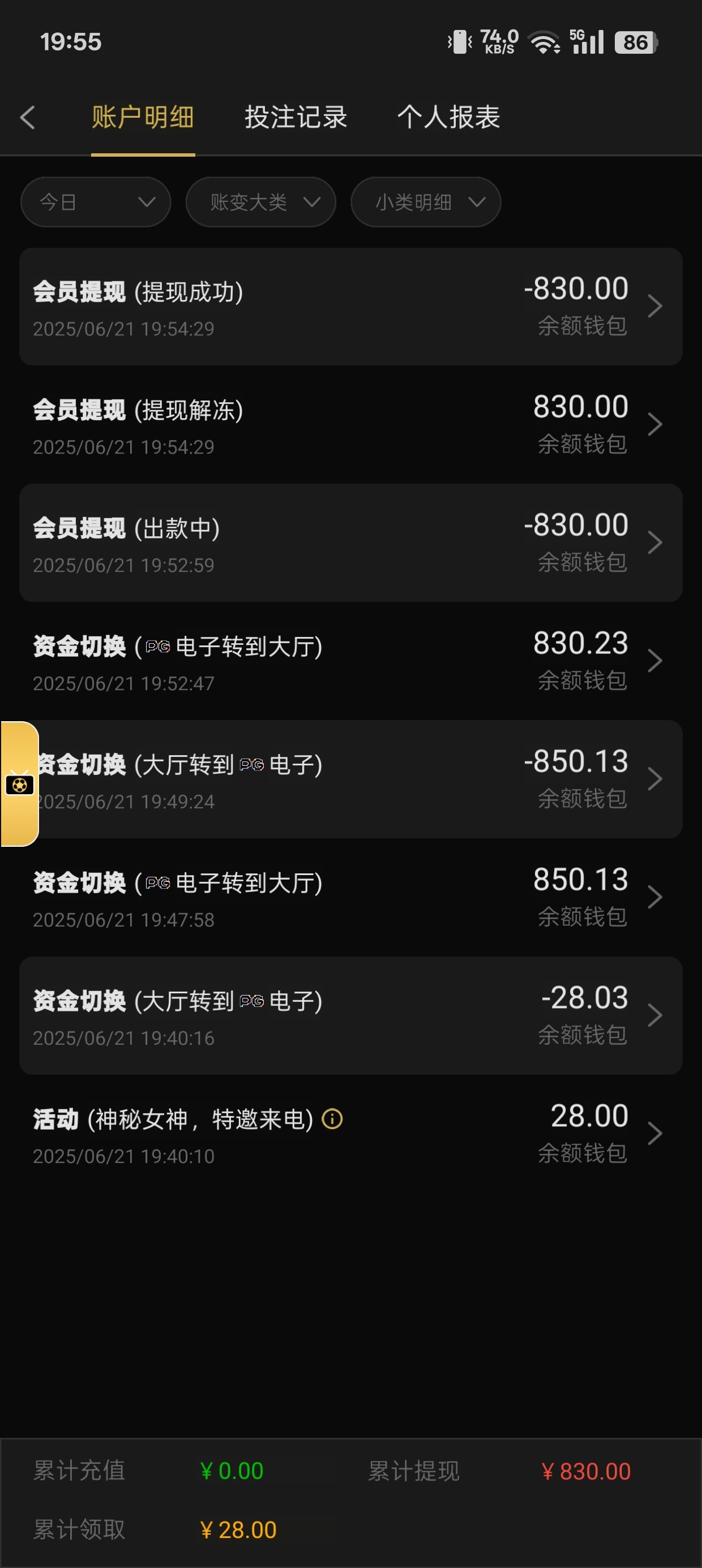 黑台子  充50打一个小时  来回一百多  提现一百直接罚十倍水