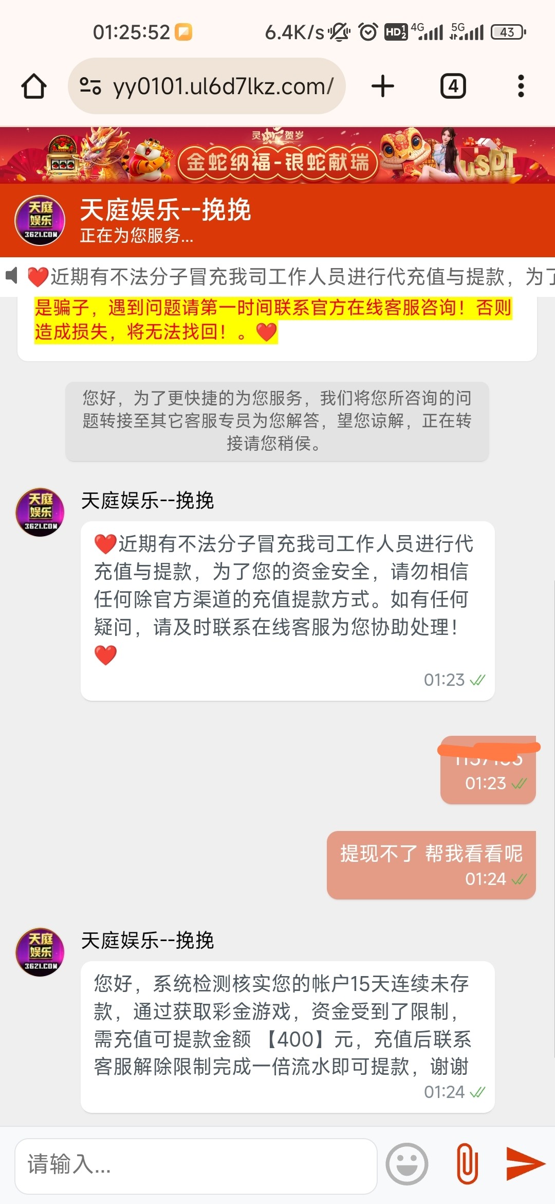 一个月不冲 领了周彩金打到4百要求冲400