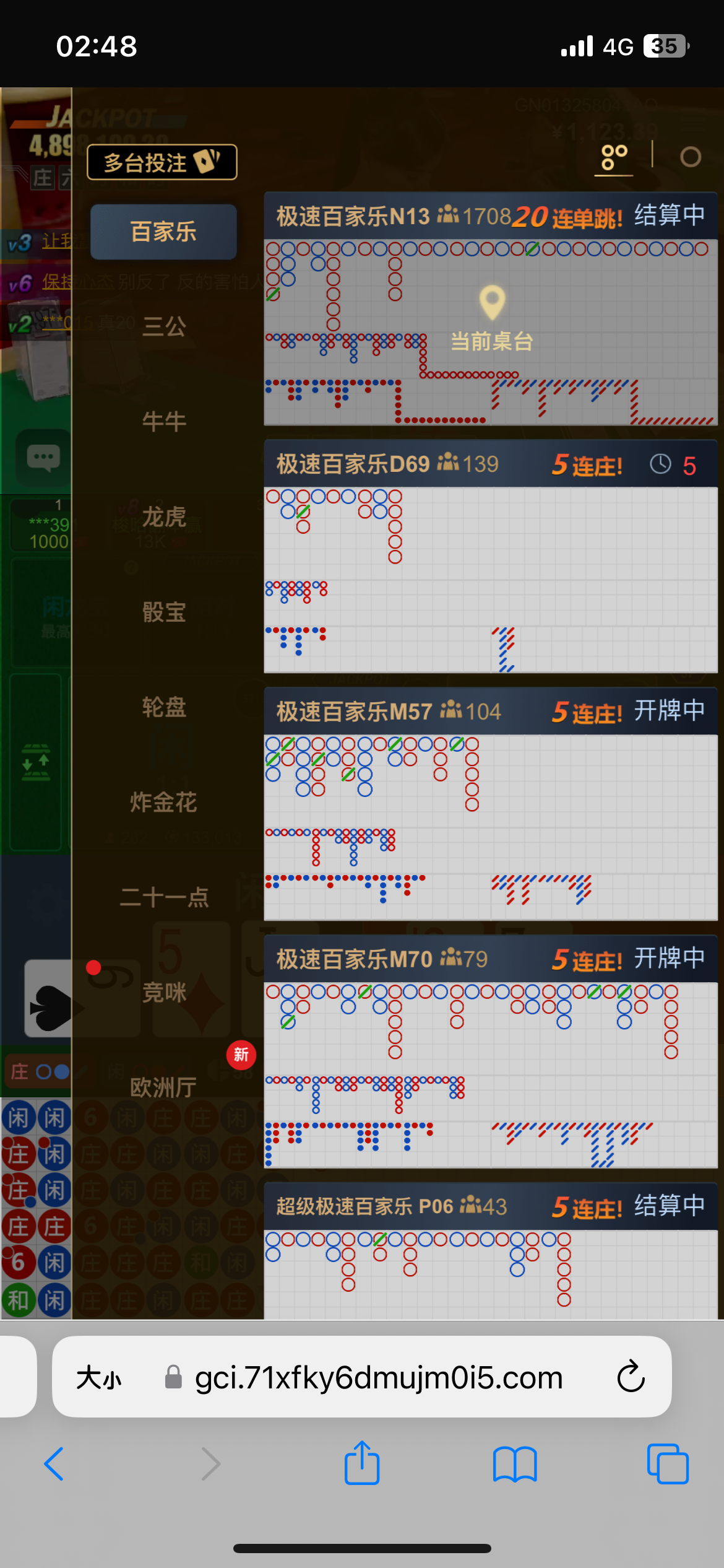 运气好遇到了一个20连长龙,梭哈到1600多去玩一飞冲天吃两倍慢慢磨磨到了55张