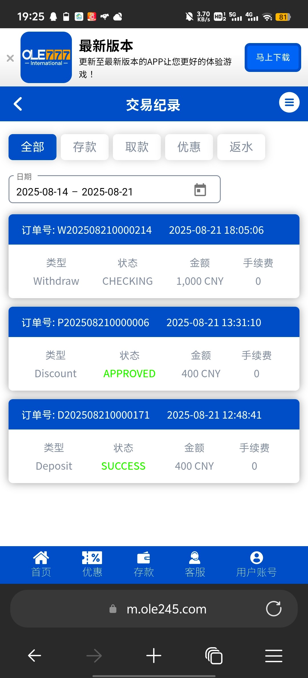 OLE777 ole245.com有没有知道这个平台的兄弟? 400送400,打上2800,现在要手持身份证才能出款 有没有懂这个台的?
