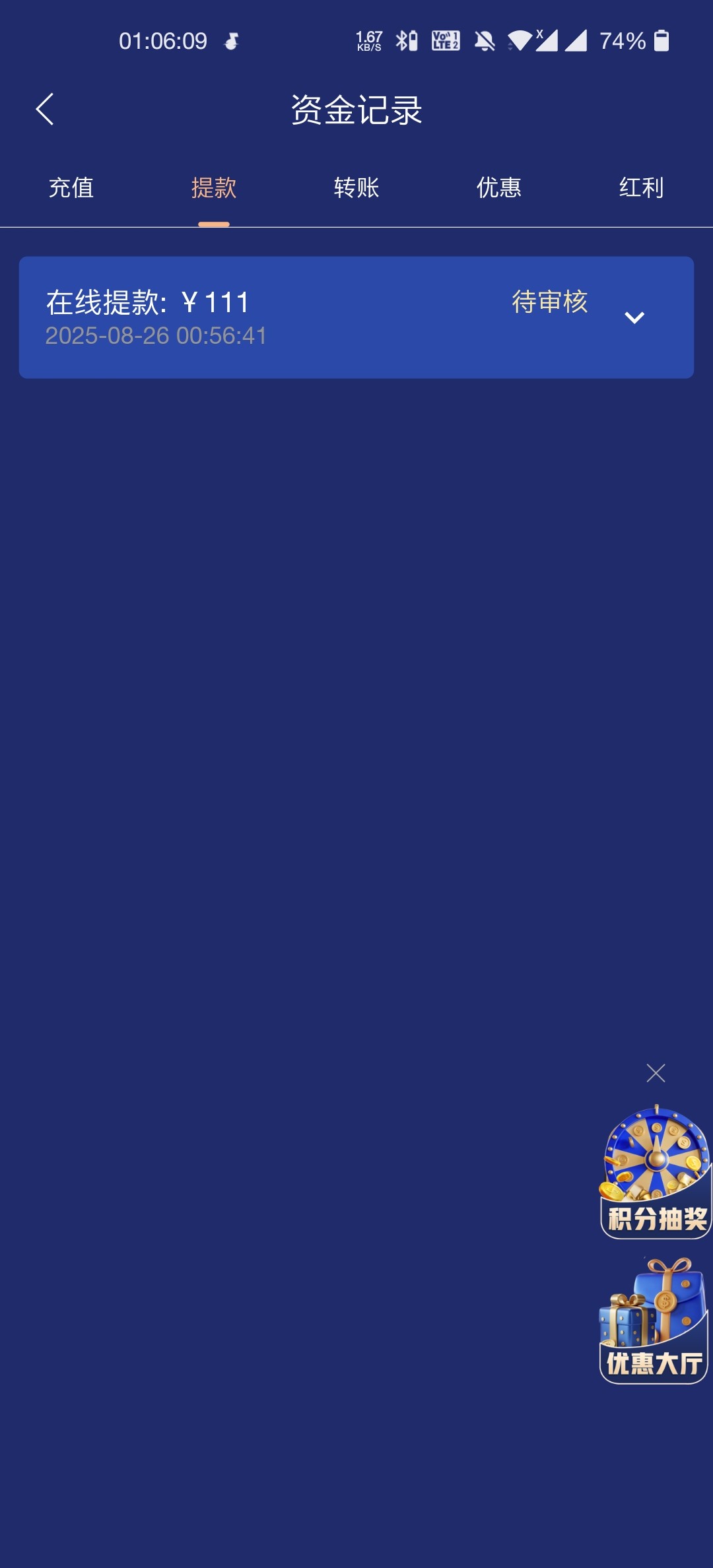 你提款到了?我提款他妈的一直审核,问客服就是直接离线,垃圾台子