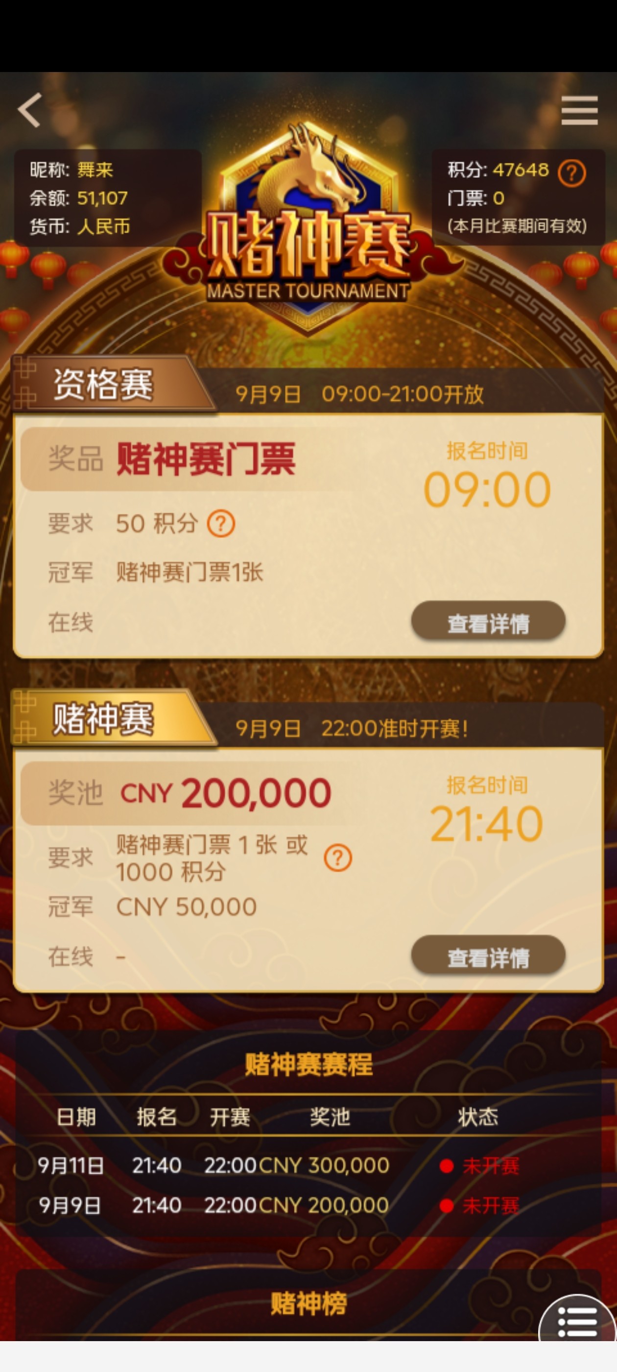 30万那场进前900就有一百了老哥们有积分的去报名一下,白得的