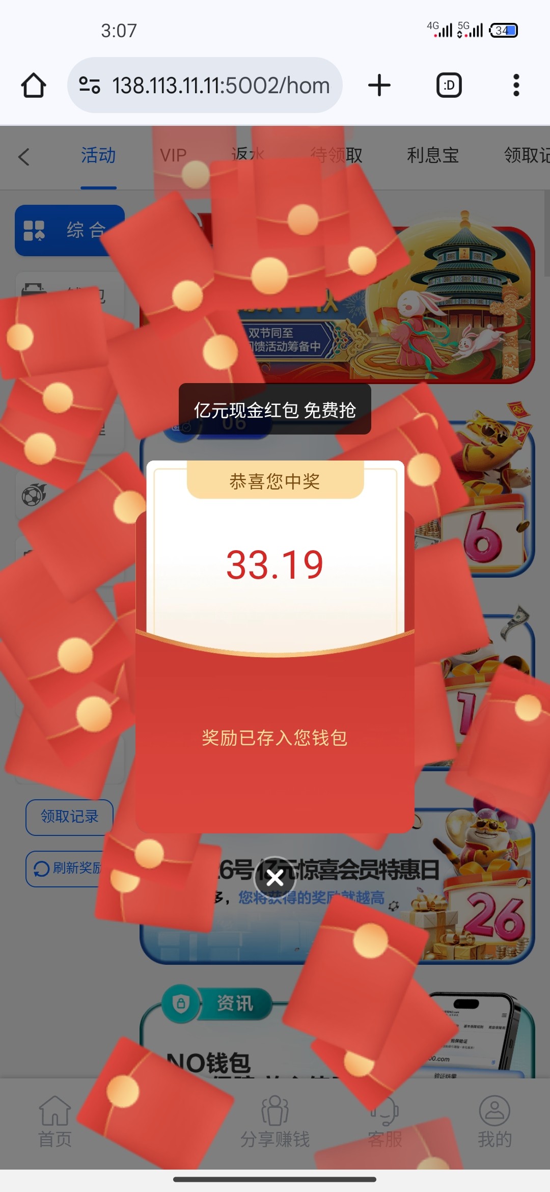 之前发过一次关于该网站抢红包的贴,那次抢了五十多块! 现在我都是每天充十块钱,然后能领到一个签到红包!