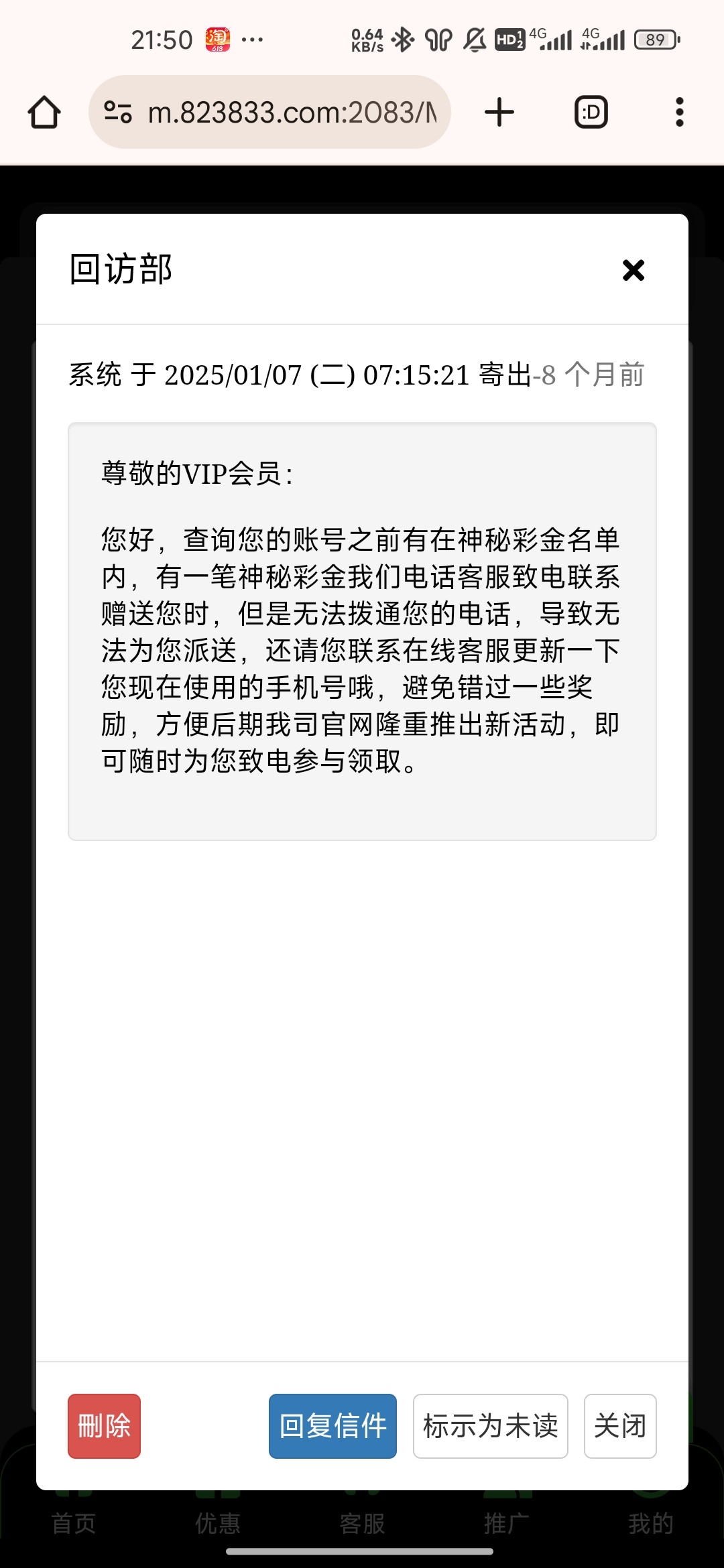 事情就是找他要电话彩金他要我验证码,我害怕他拿去注册什么东西没有给