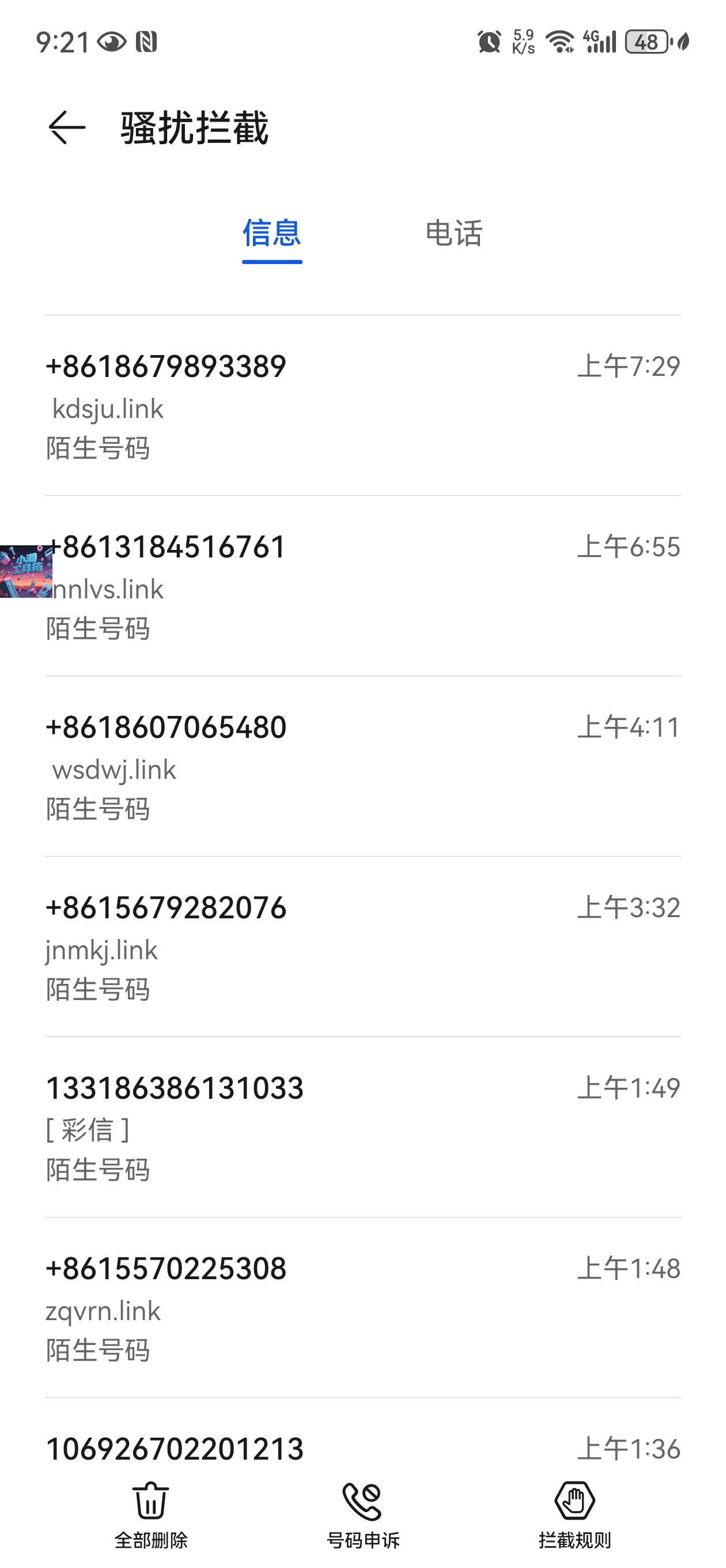 都是垃圾短信,直接删了,都懒得看有没有用