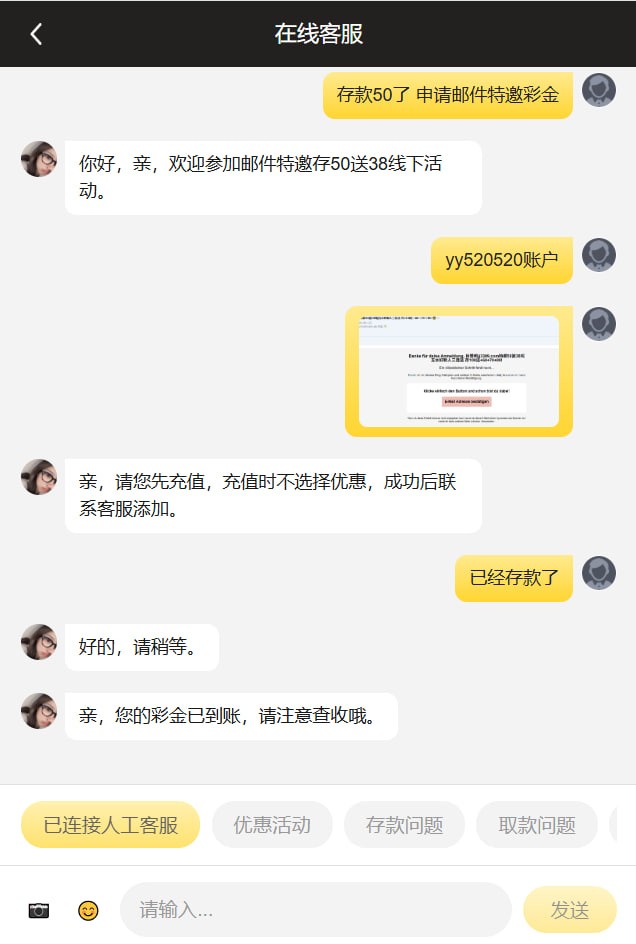 巨奖邮件特邀存50送38 网站 jj3399.com 还有个新人三连存也是5倍水 可以试试哟