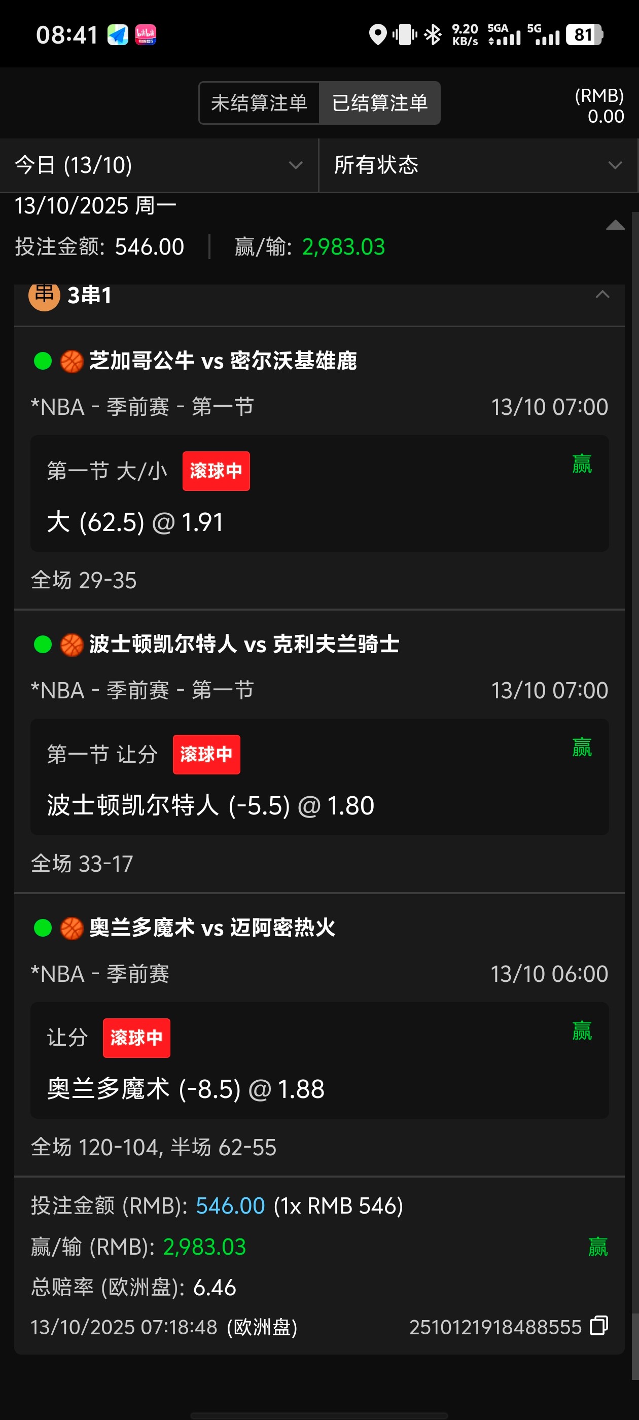 8块周彩金1块签到百家乐过6关,然后体育3串1中了,9块变3500,提现3300回点血